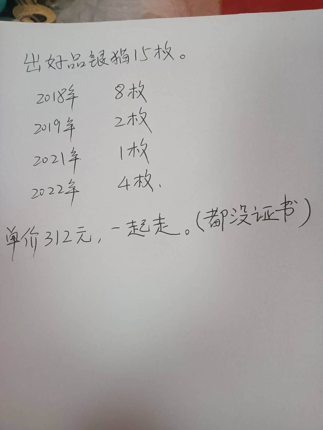 2018/2019/2021/2022熊猫银币(三十克)。原货未流通无磕碰无划痕,保真。数量单价如图,如图发货三包。