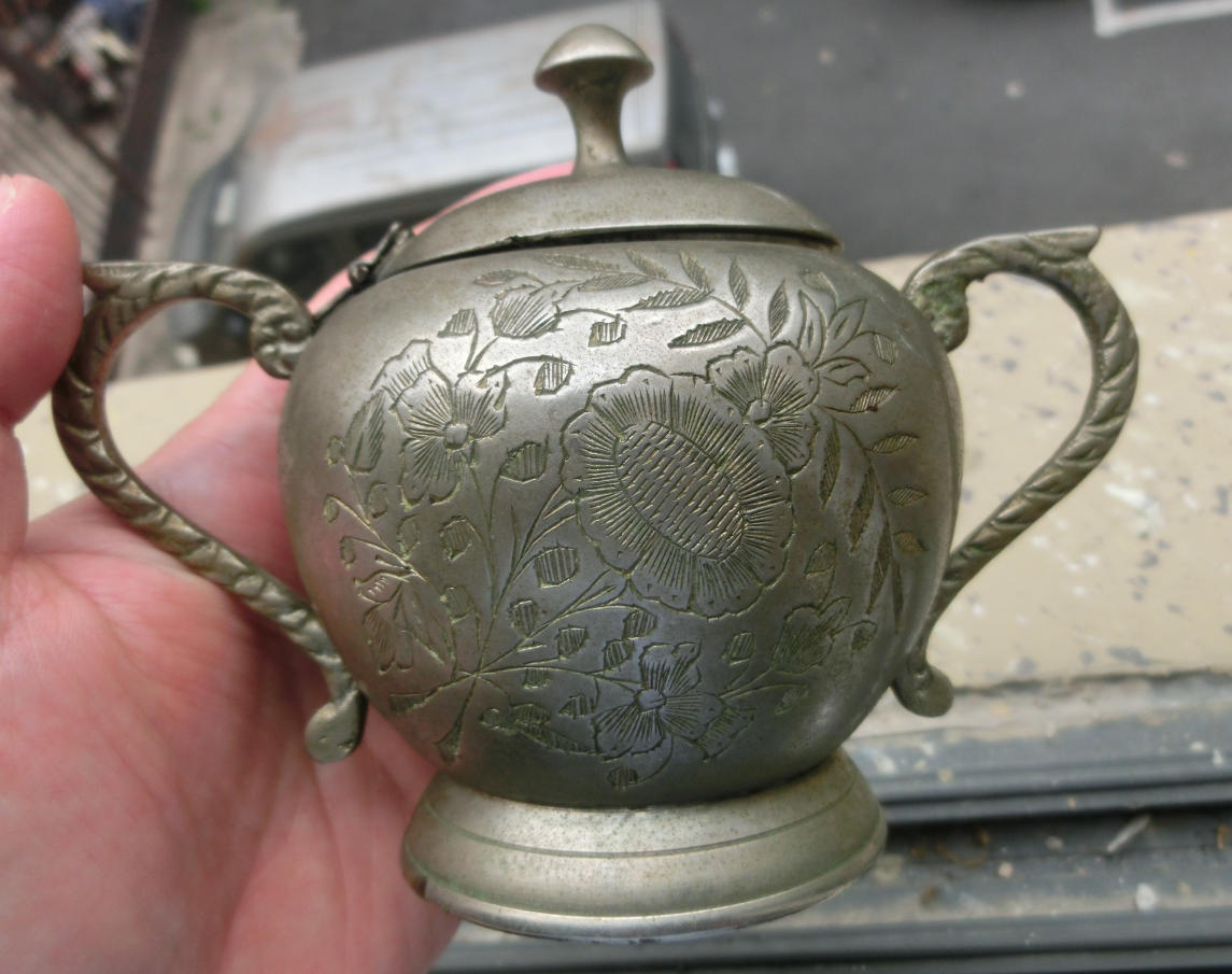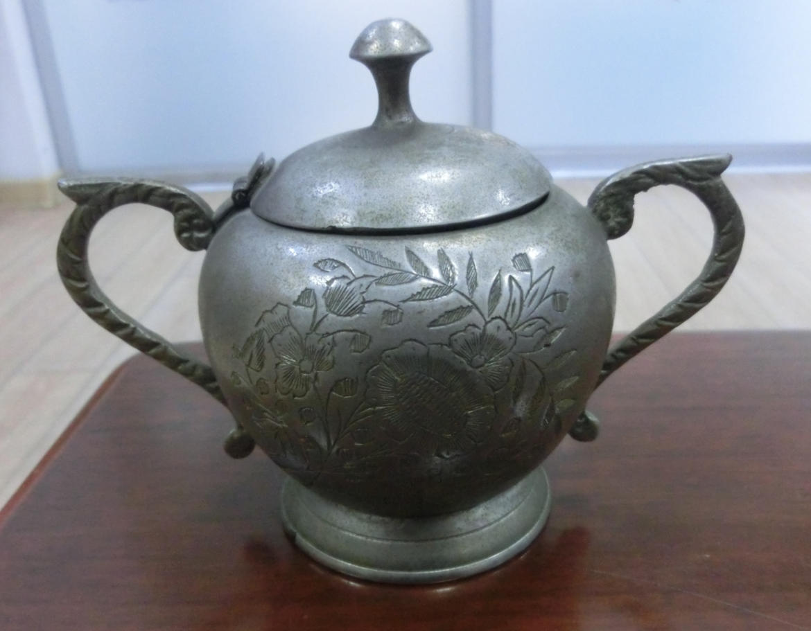 → 传世美品、花开富贵、双龙柄、民国奖杯型白铜质茶叶咖啡罐