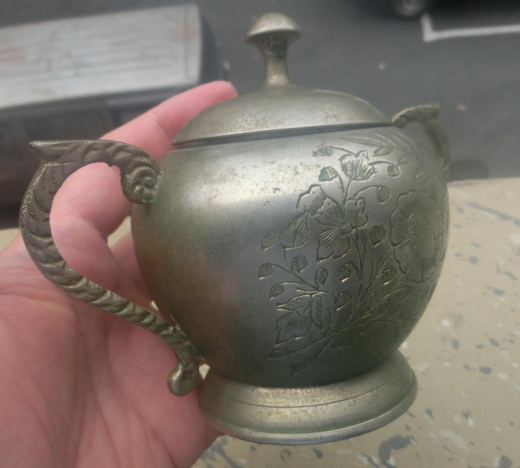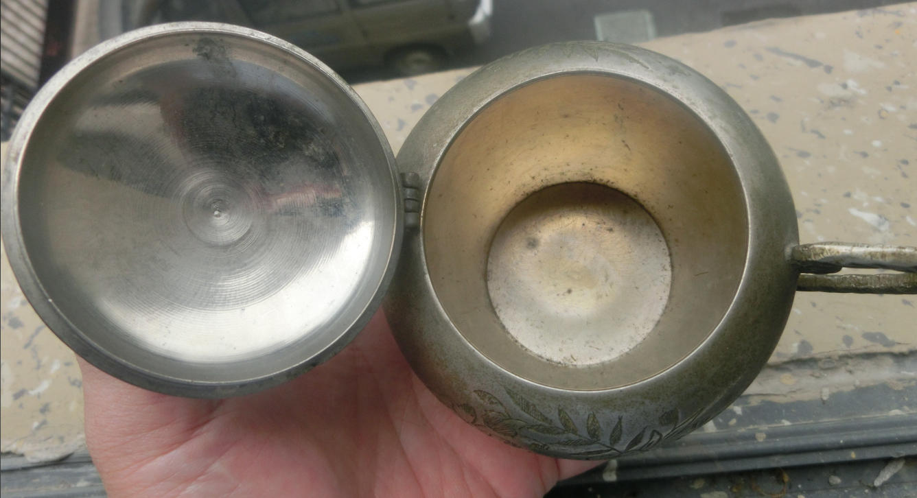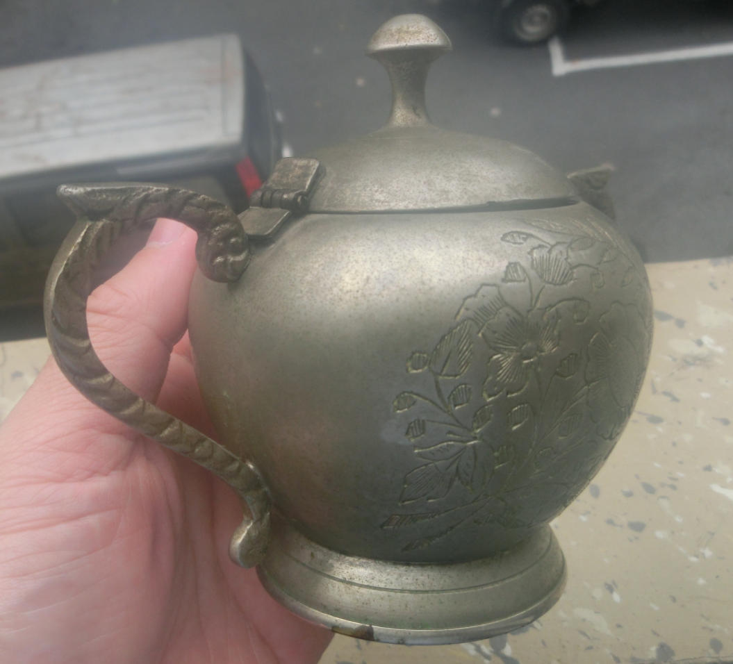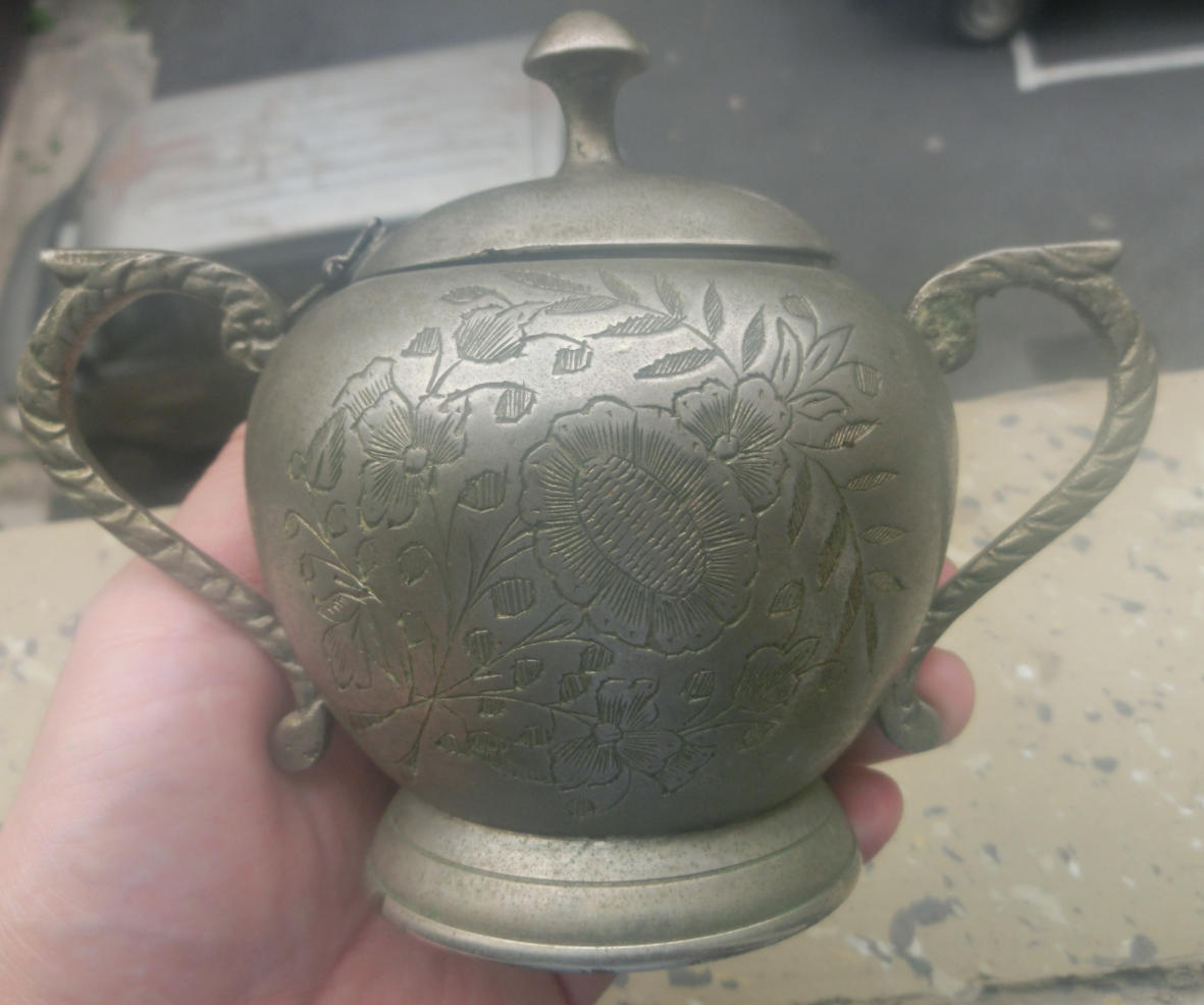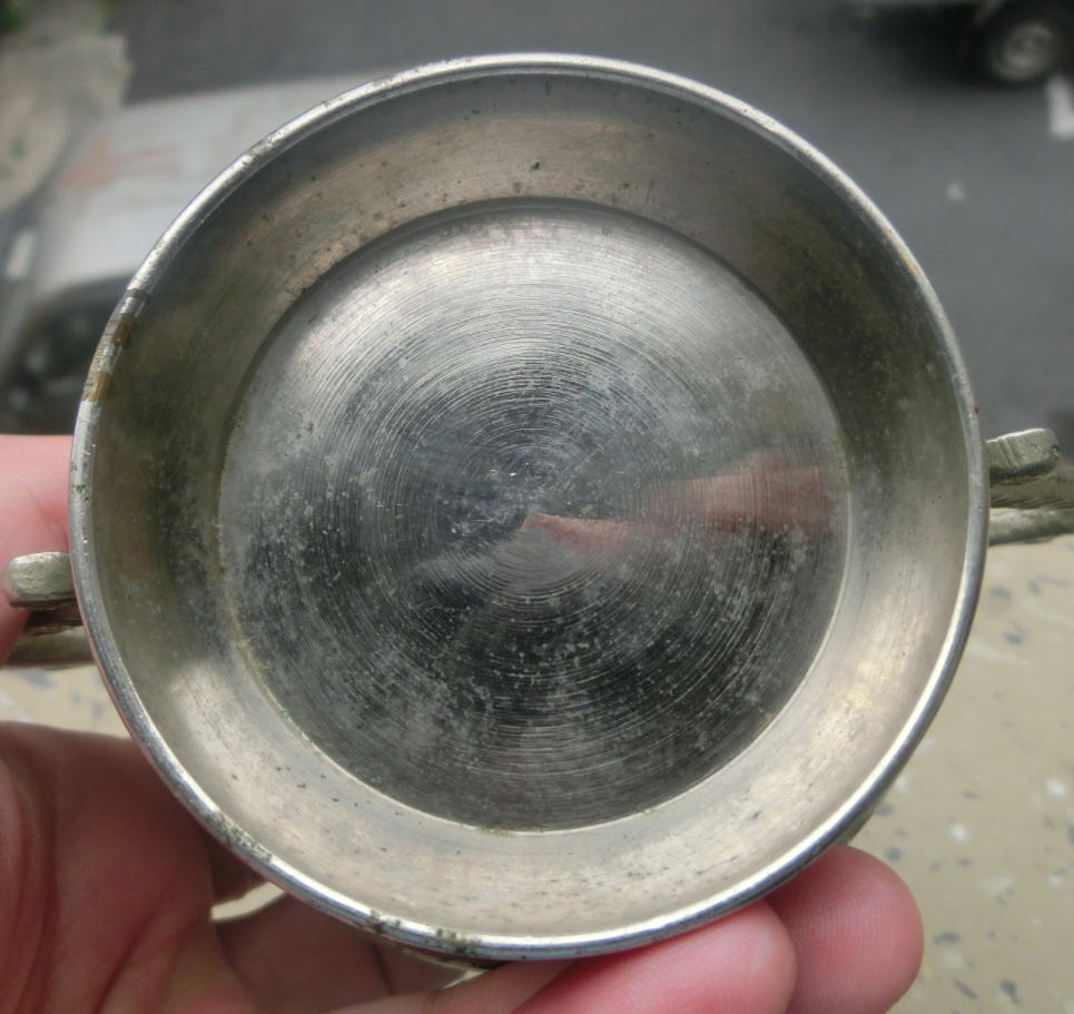传世美品、花开富贵、双龙柄、民国奖杯型白铜质茶叶咖啡罐,长15厘米、高11厘米、口径6厘米、底径6.6厘米,品质保证,实价690元。