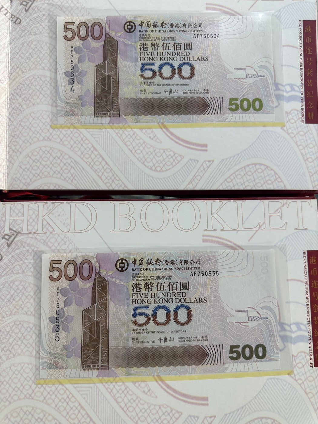 → 香港全同号两套,中国银行册子