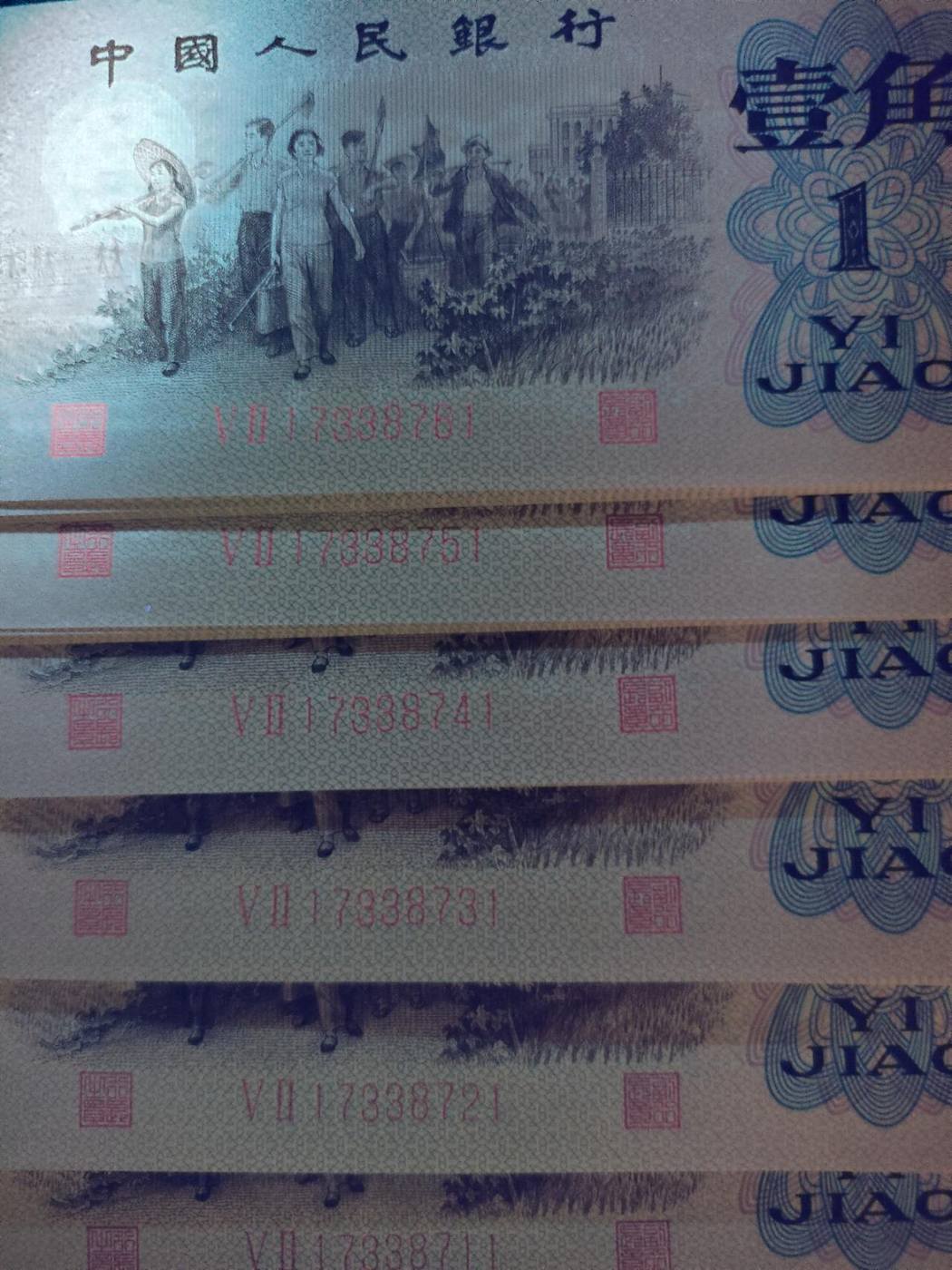 → :小1角红二凸全新数字国徽荧光6个标十