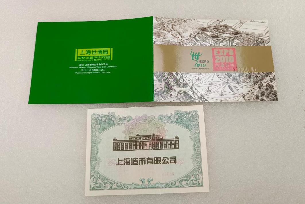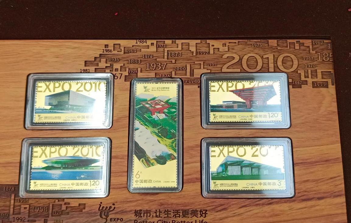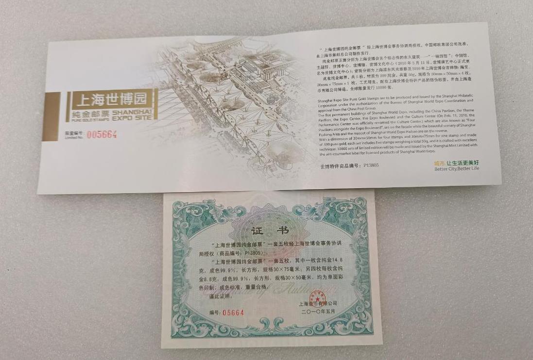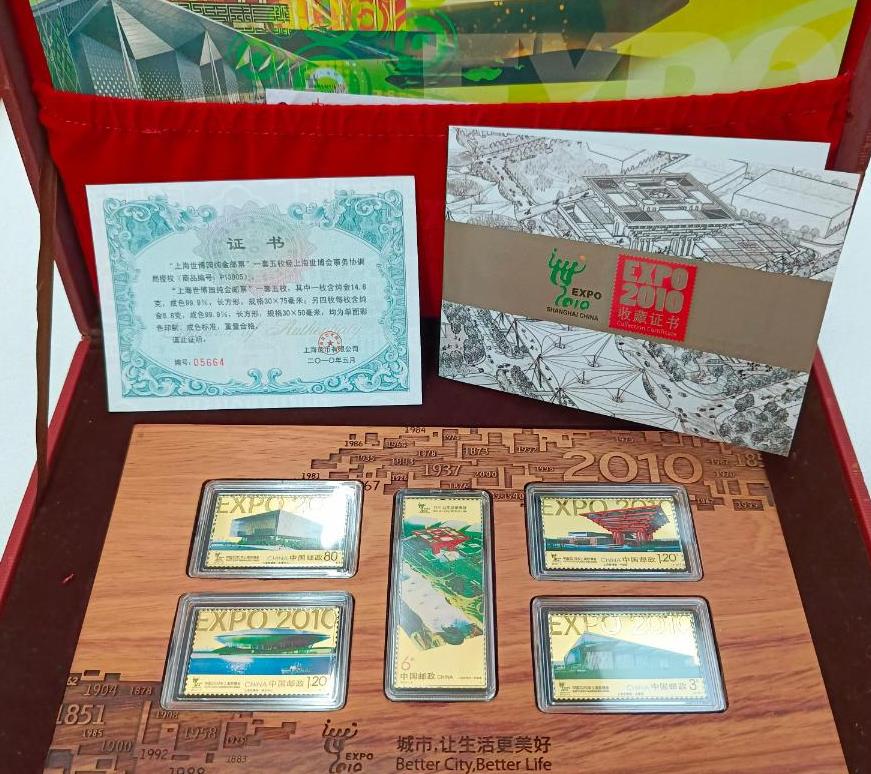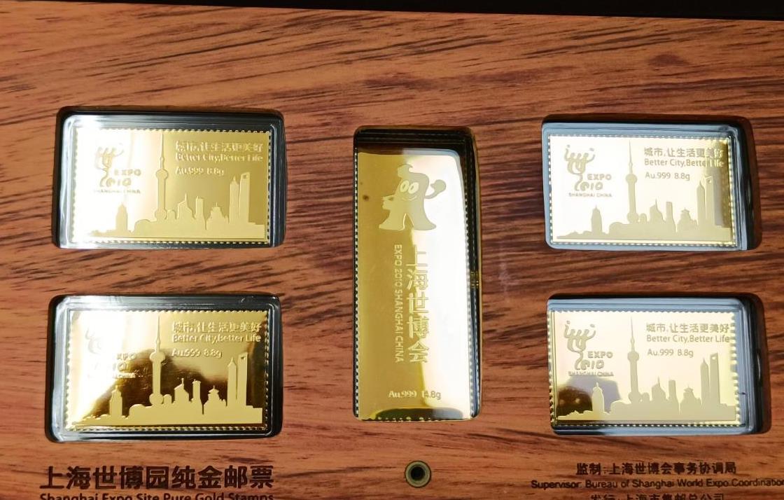 上海世博会纯金邮票一共50克,按金价卖了,带原盒子证书,永久保真,需要的联系!