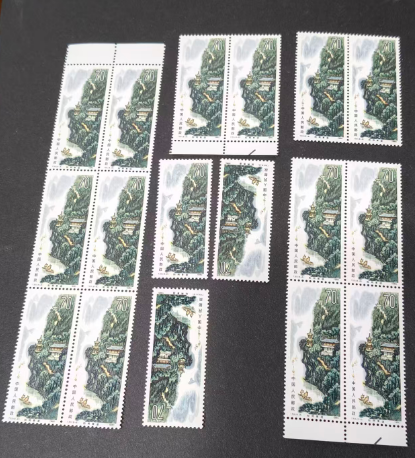 都是原胶全品,无黄无折,背后雪白,东西不多全部一起包邮包退,桂林山水17枚,蘑菇16枚,档案周16枚,奔马20枚,都30.00/枚