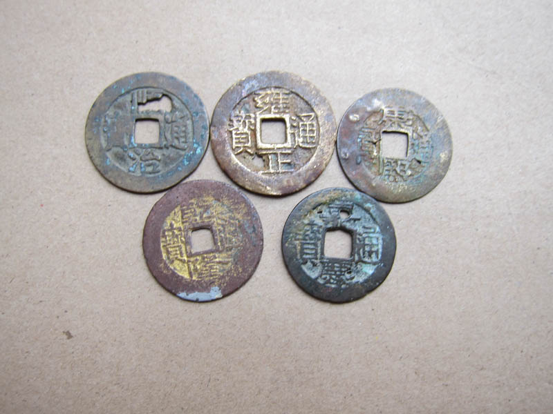 五帝钱一套:都有“小眼、孔”(雍正27+),品如图、看清、要求高的不要确认,价:158元包挂