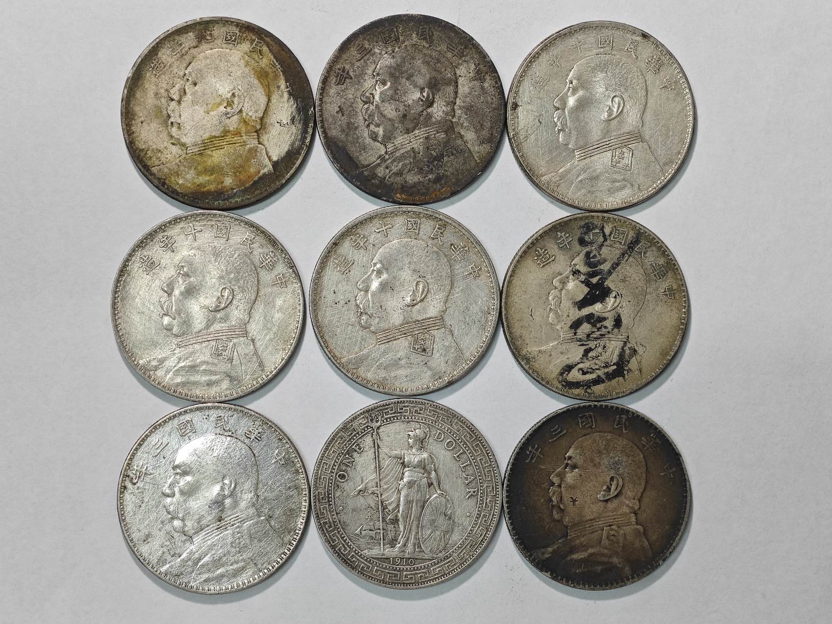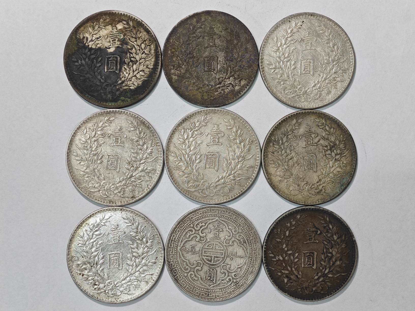→ 出售 袁大头、站洋 银元共9枚