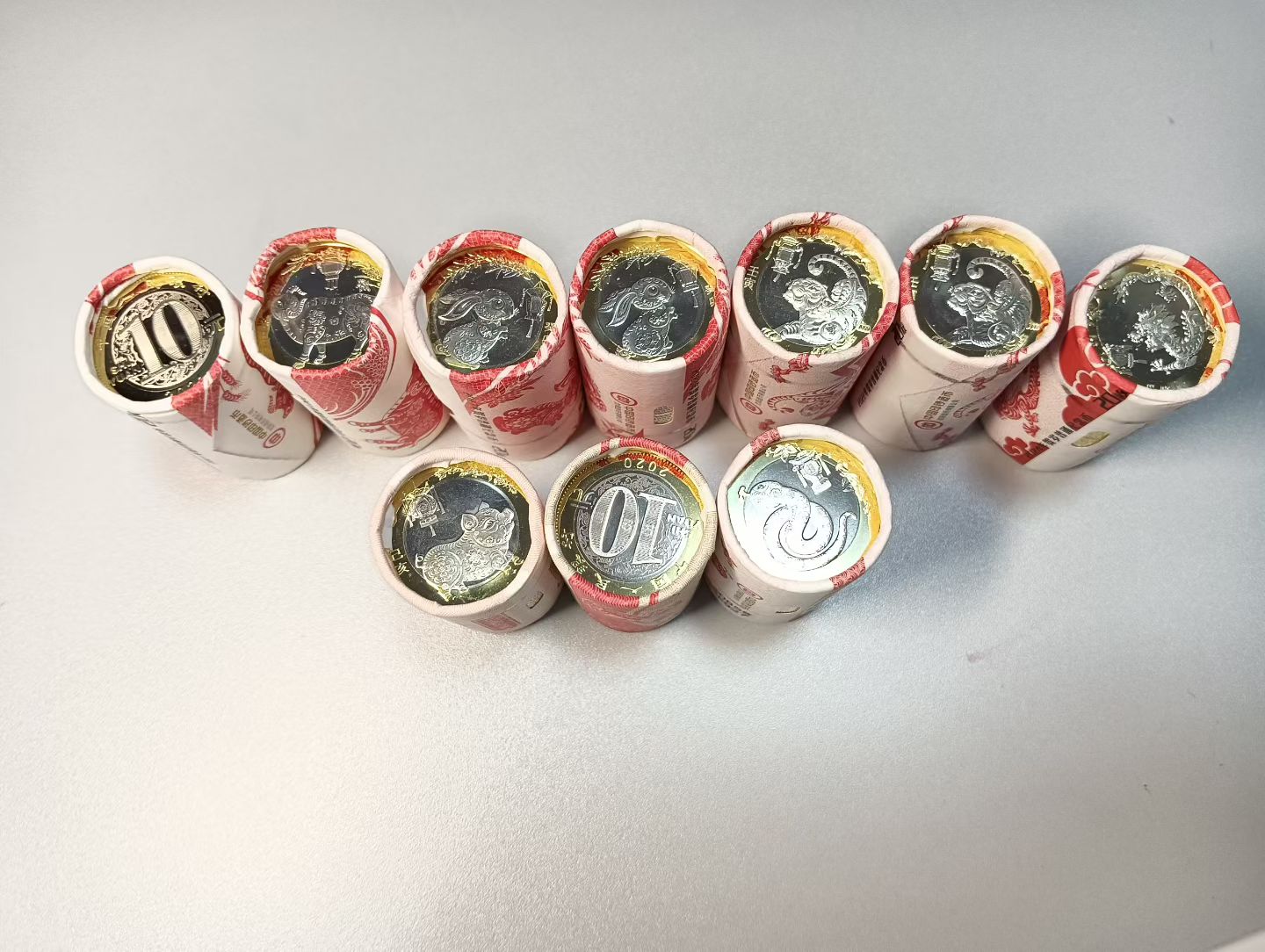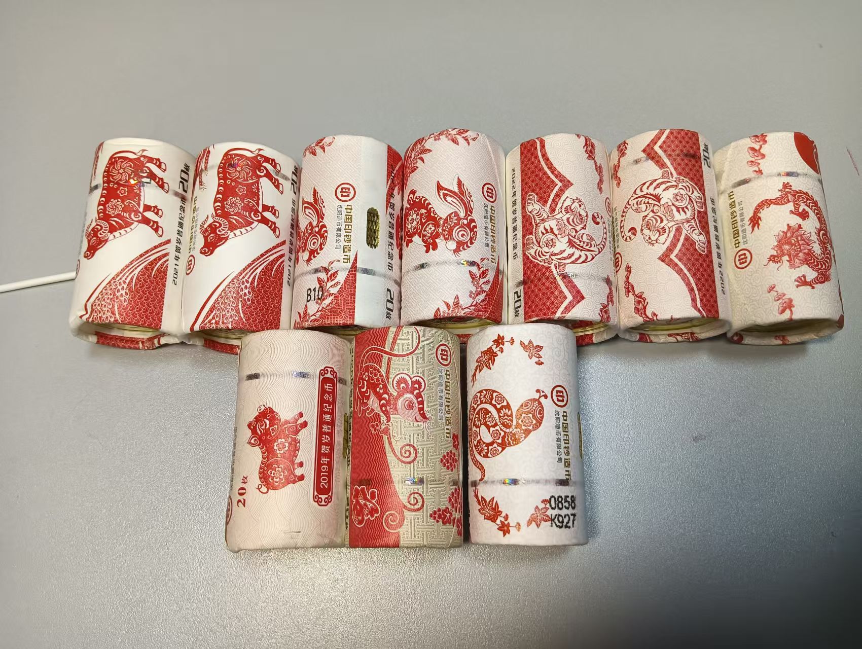 二轮生肖,龙19.5元390元,虎16.5元✖️2卷660元,兔13.7元✖️2卷548元,牛11.5元✖️2卷460元,猪11.5元230元有小裂,蛇11.8元236元,鼠205元。品相完整,一起合计2729元。