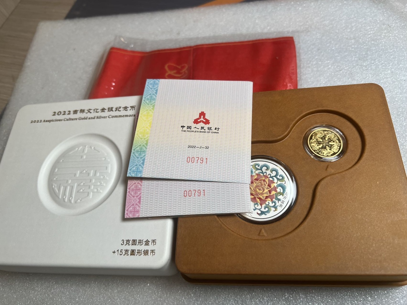→ 3030出售一套22年花开富贵金银币,号码00791