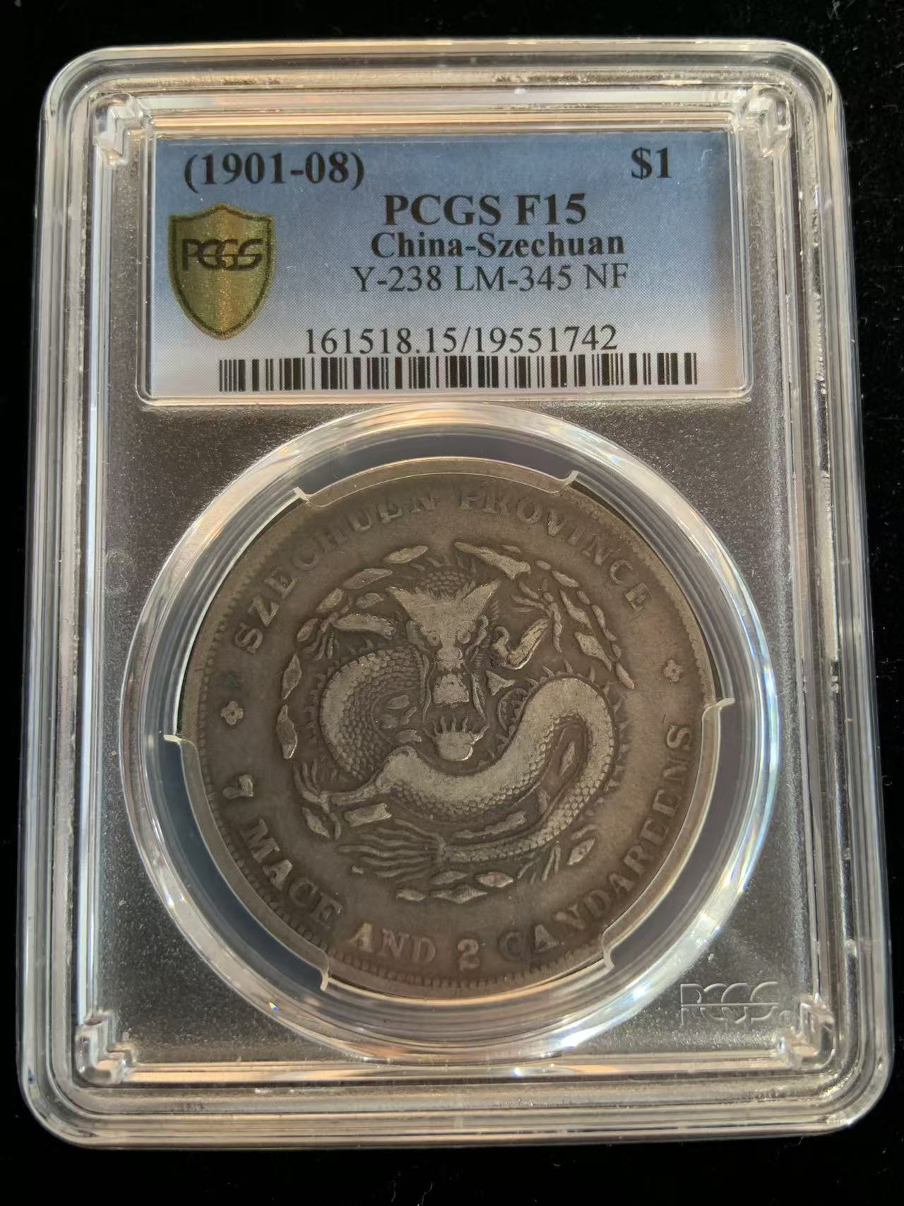 川龙PCGS 评级一枚 有分15分, 无戳伤补!