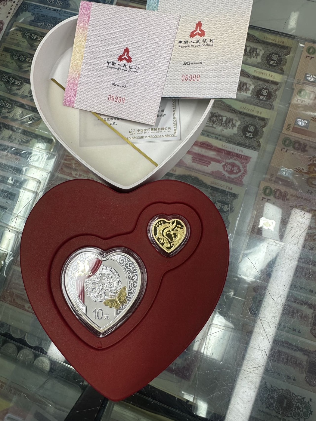 出,龙凤呈祥金银一套,证书靓号06999