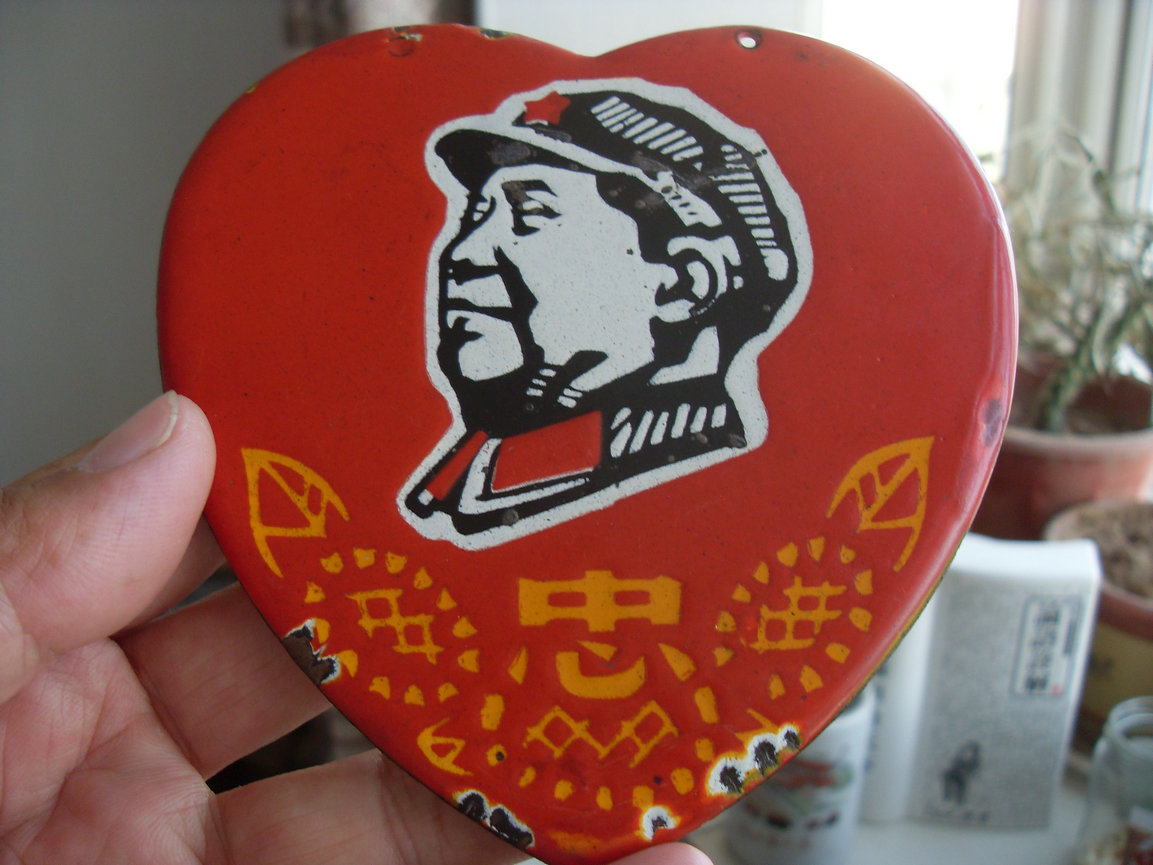 → 珍稀【心】形搪瓷毛主席大像章!!