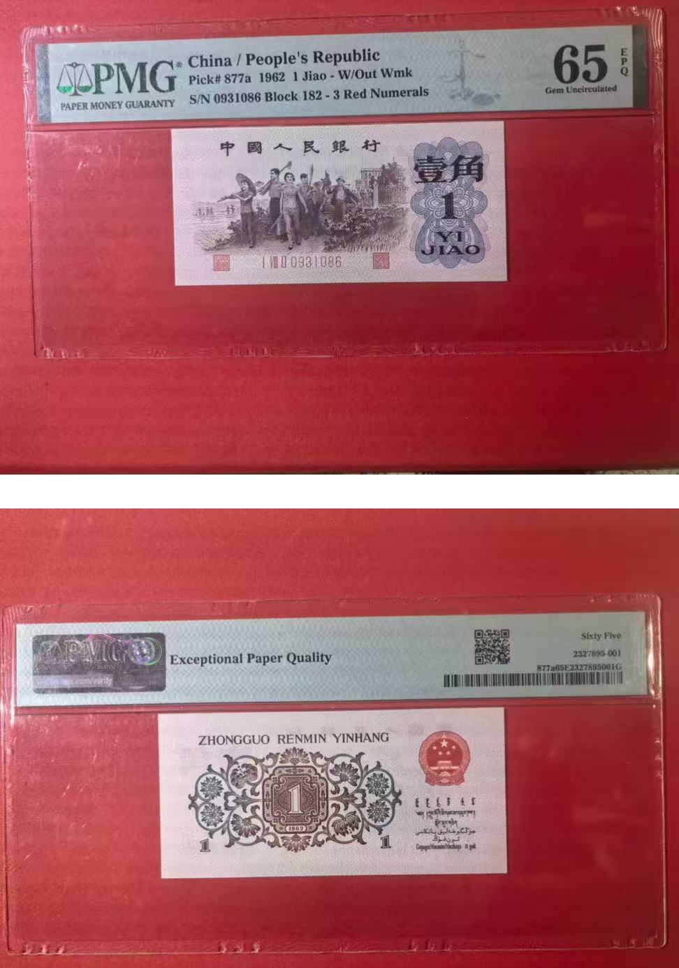 三版背绿一角美评PMG65E无47尾6,全新直版原票,票面干净,颜色鲜艳,售价3250包顺丰