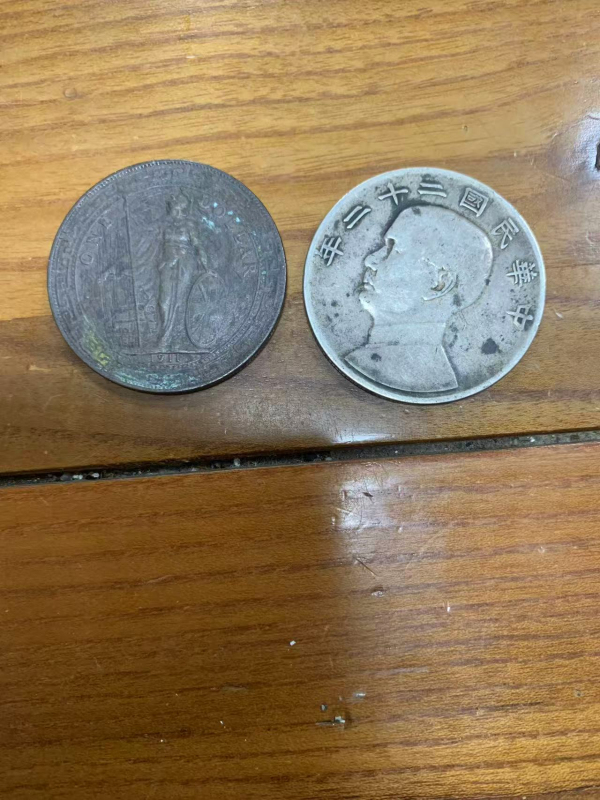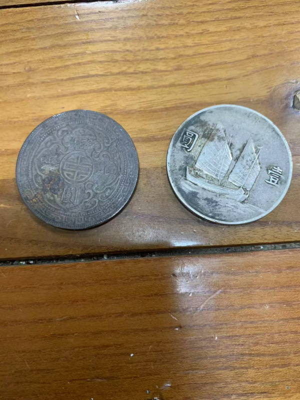 → 出2枚银元,一枚22年船,一枚站人,包老包真,一线货。