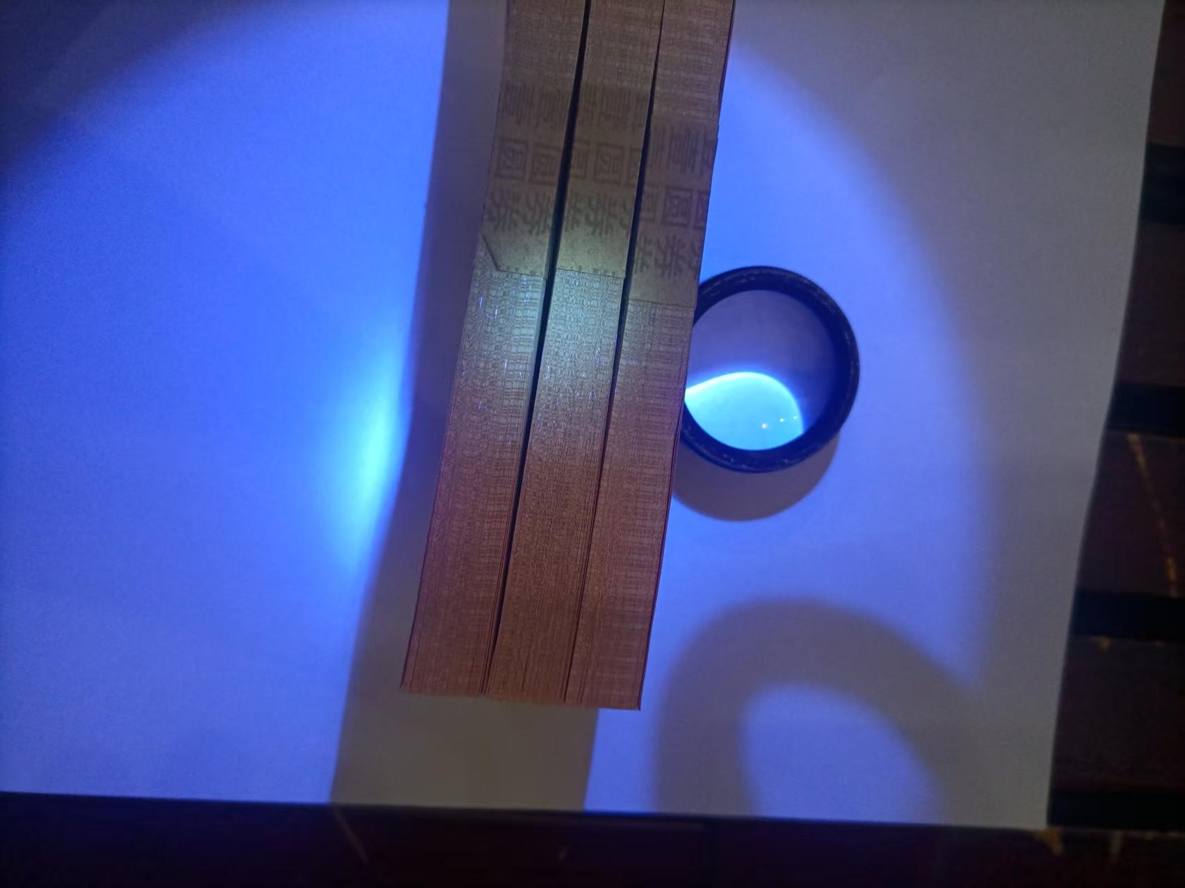 三刀百连灯下无斑,901刀最后一张有裂口折和油墨