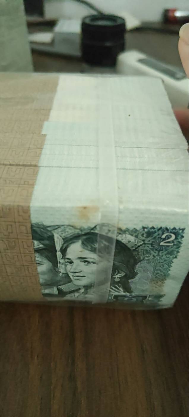 有一捆第一刀原膜破了一个口,有黄斑,其余绝