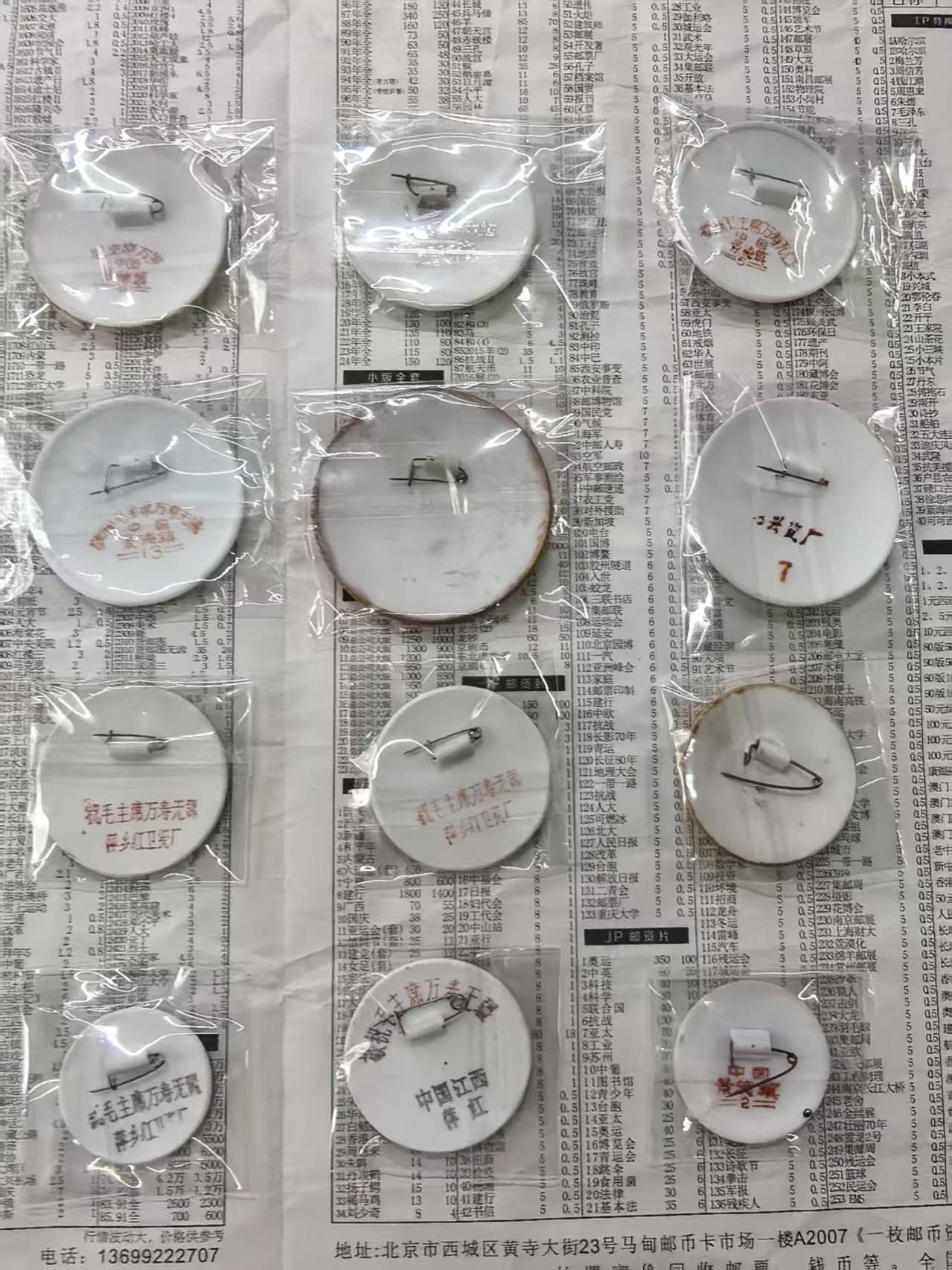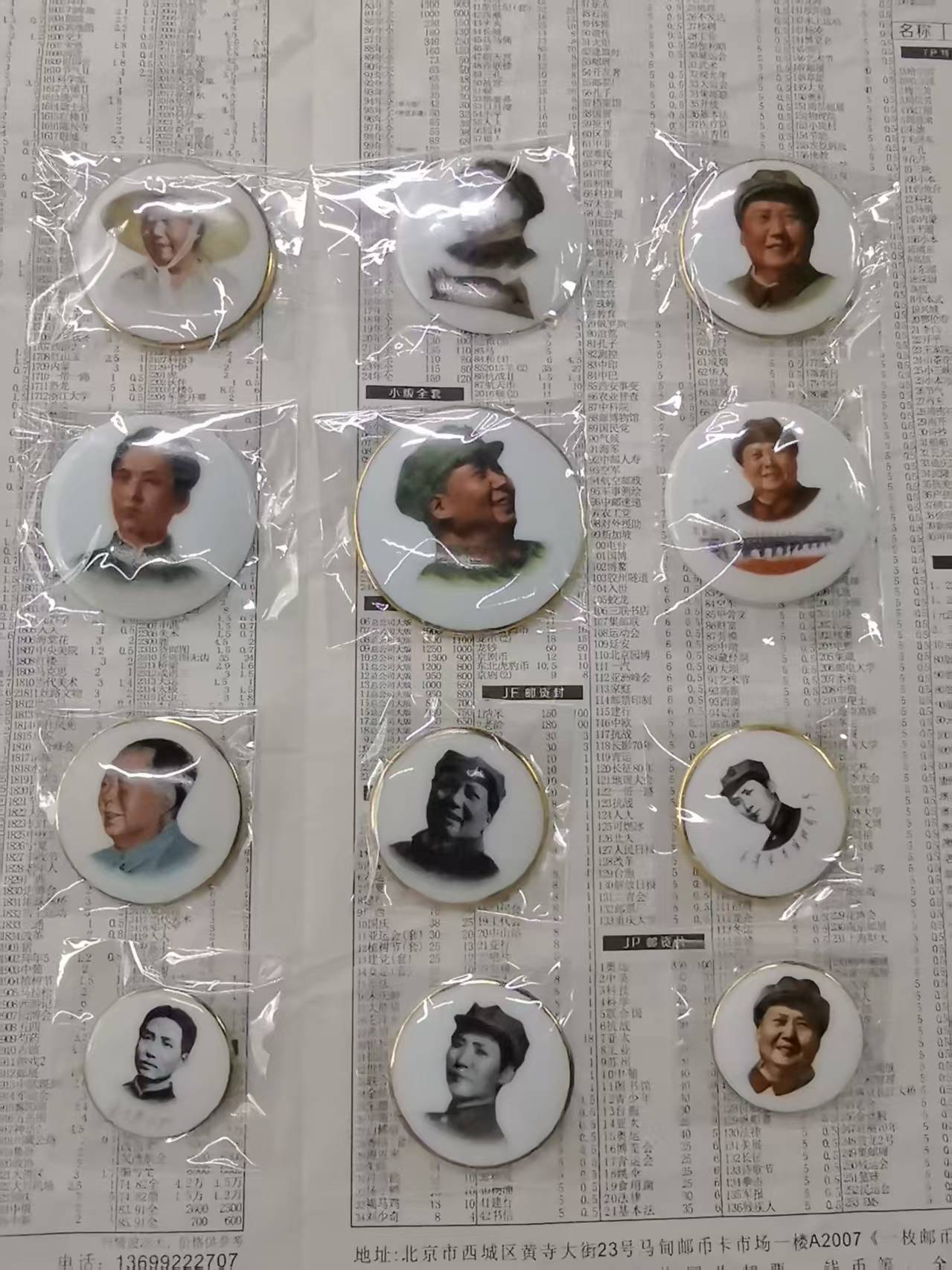 非常精美的金边瓷相章12枚,上面二排6个直径50mm到60mm,下面二排4个45mm左右,2个37mm左右,品相非常好,值得收藏,一起出600元包邮