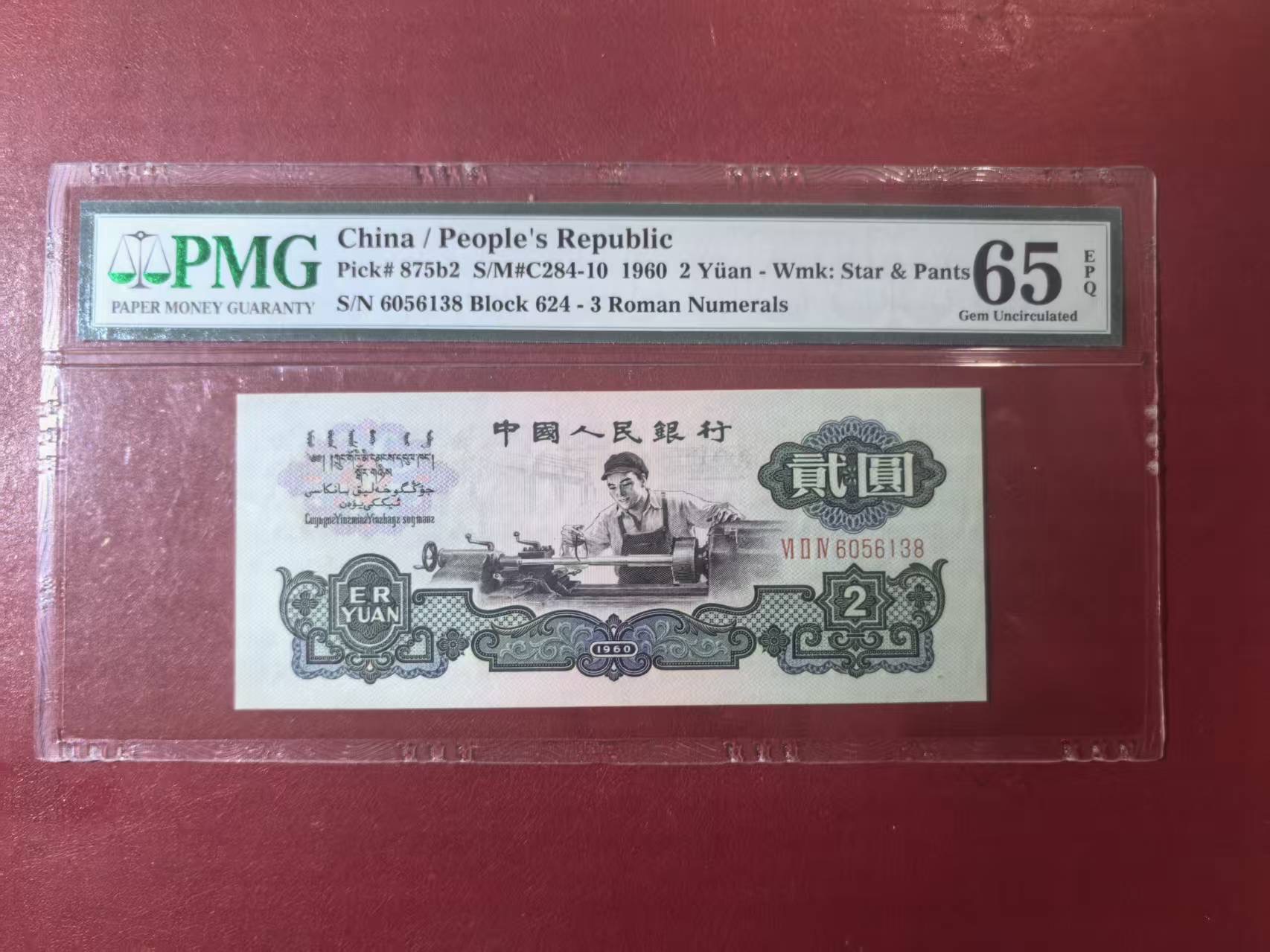 三版古币车工美评PMG65E无47尾8,颜色鲜艳,水印清晰,状态自然,售价3600包顺丰