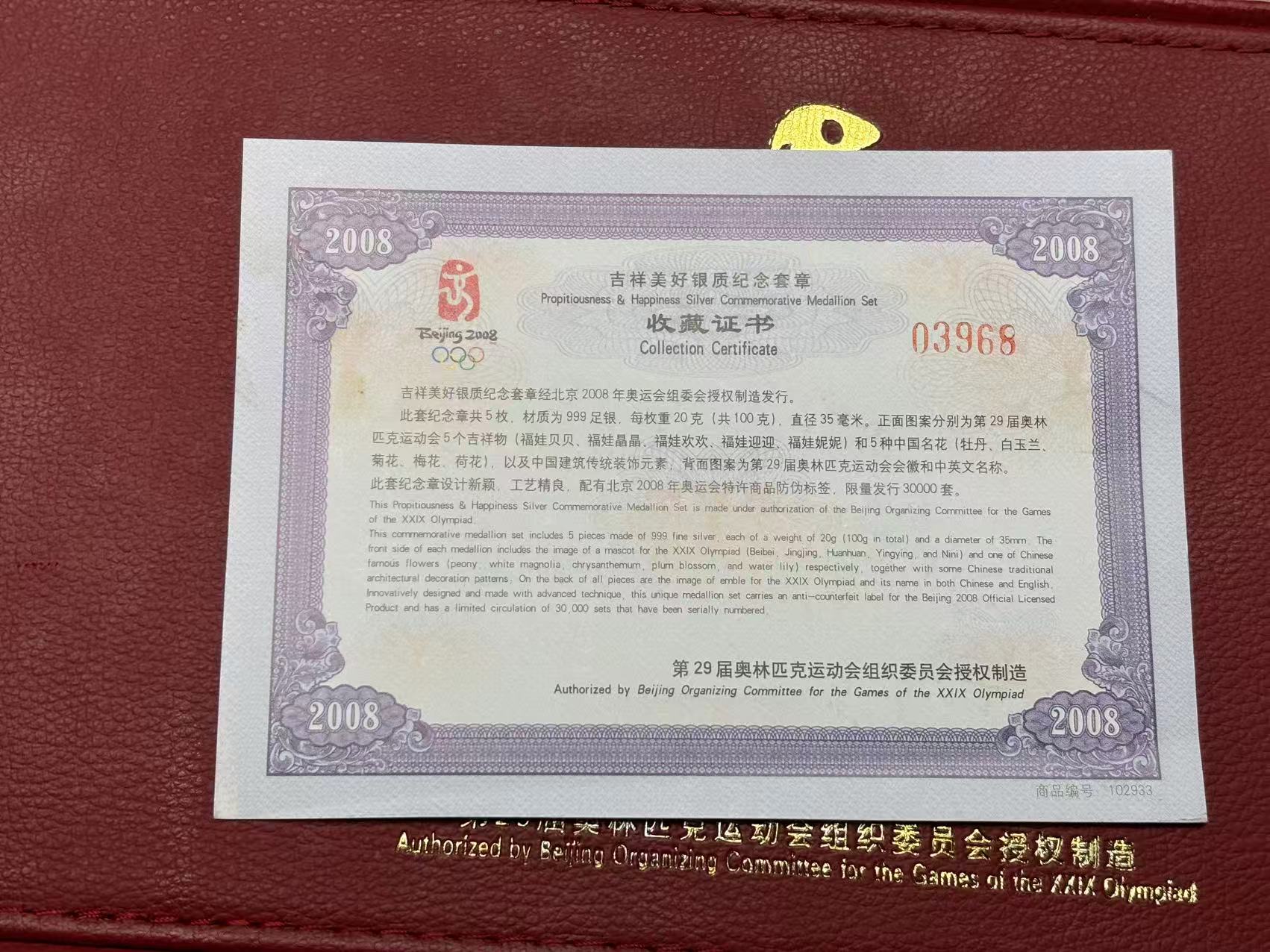 奥运吉祥物-吉祥美好银质纪念套章