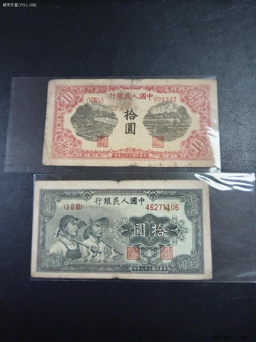 原票一版拾元锯木,工农各一张