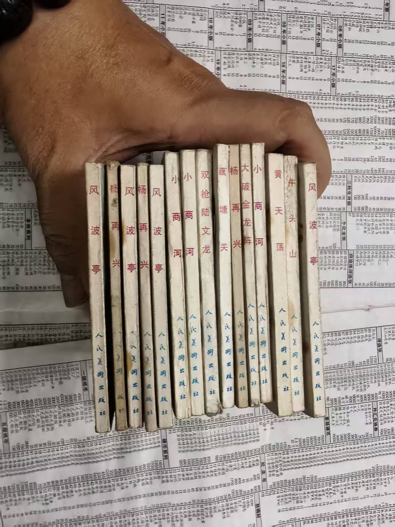 出品不错的人美岳飞传15本,有几本重复了,品不错的,就是背后有些钉绣,一起出300元包邮