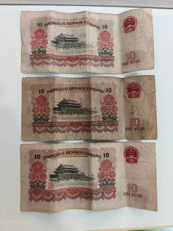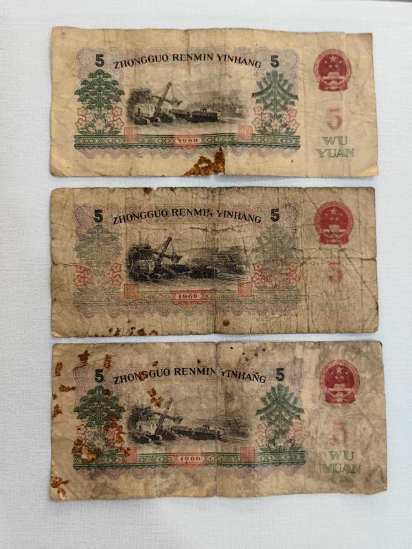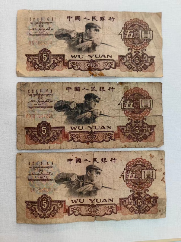 原票品如图,车工1张450元,炼钢3张40元/张,大团结3张20元/张。