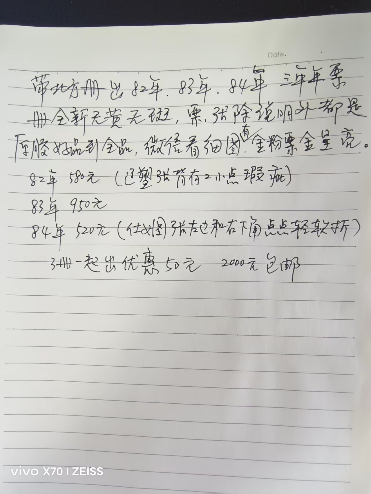 票张无黄无斑,金粉好