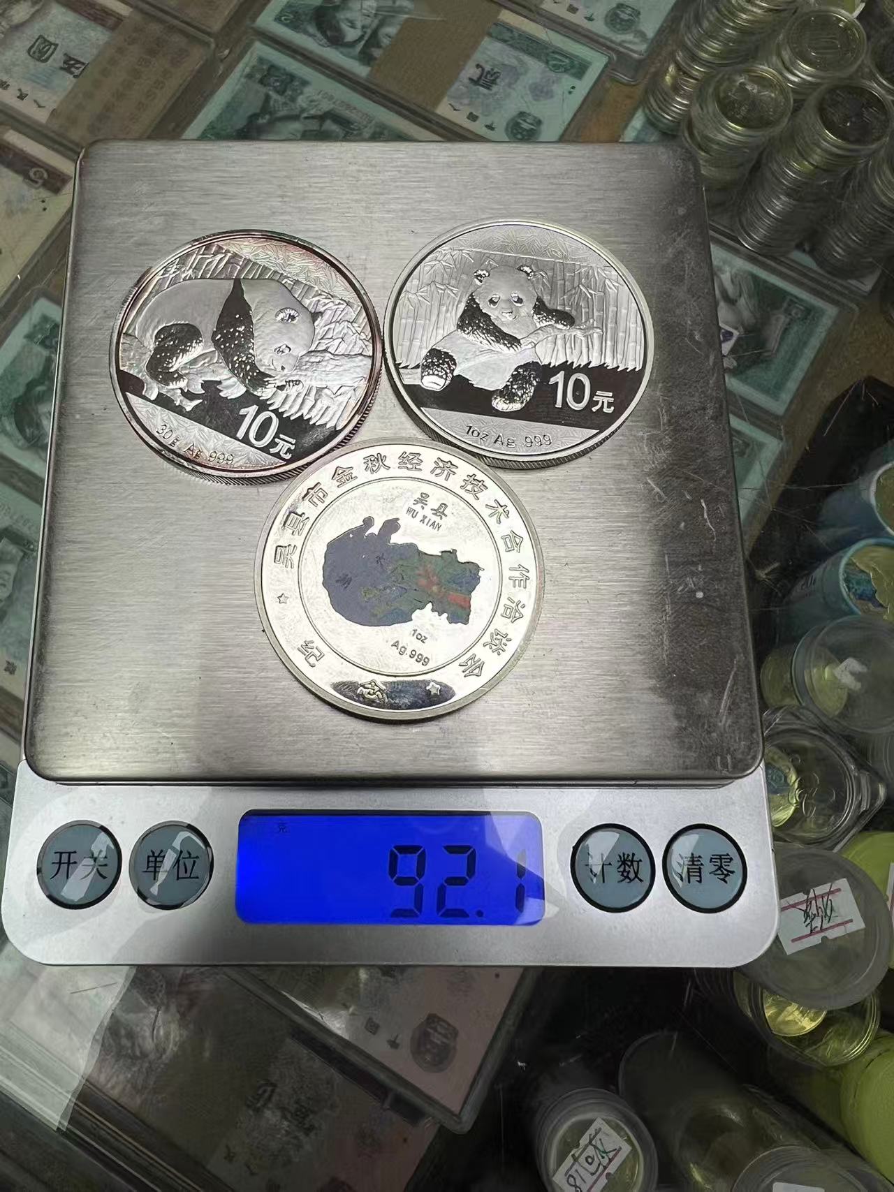 14年银猫,16年银猫,1999年银章1 盎司,三枚92 克,每克售11 元,一起1012 元包普快