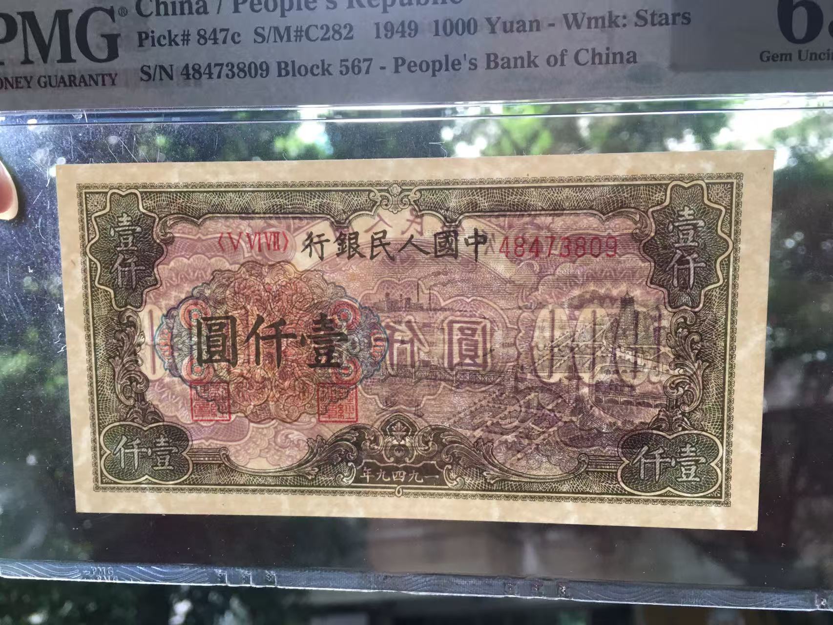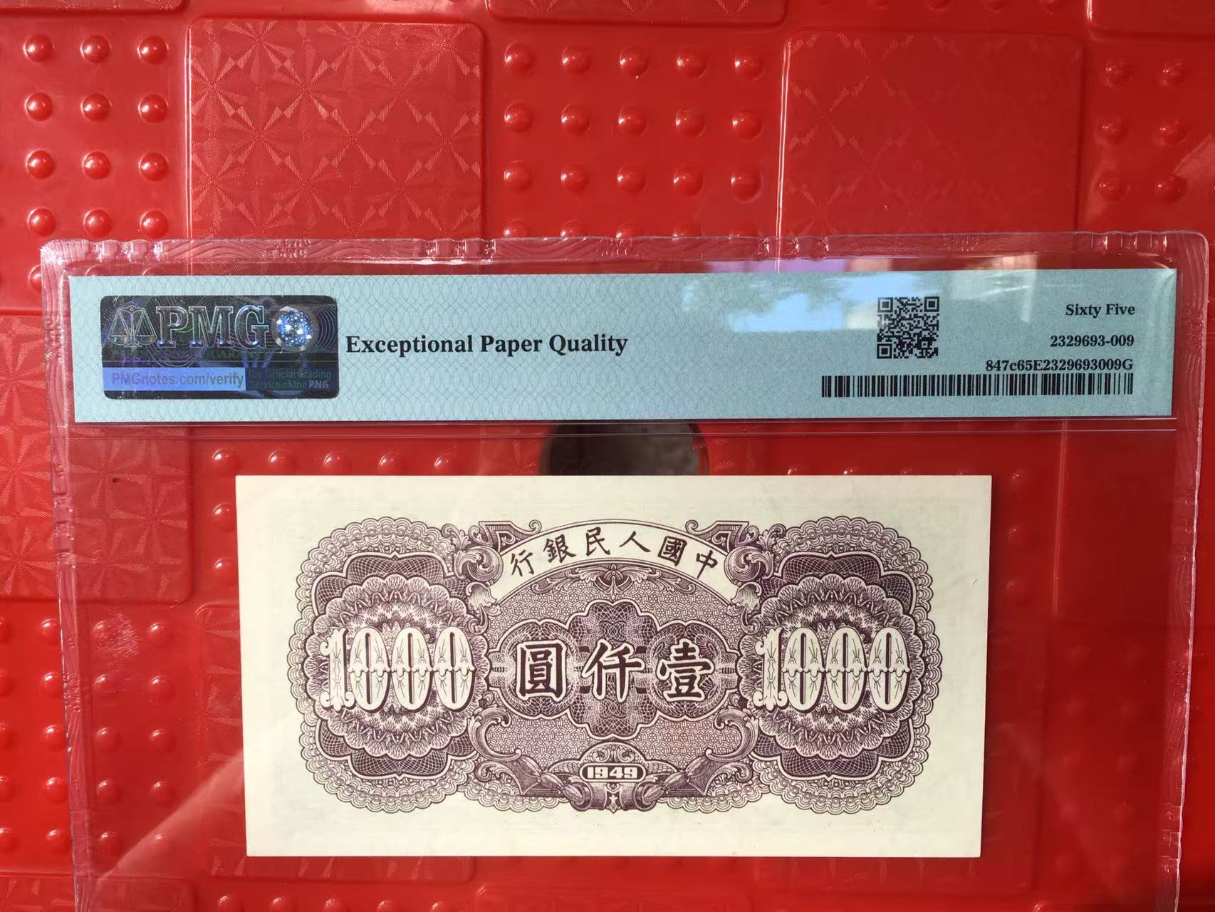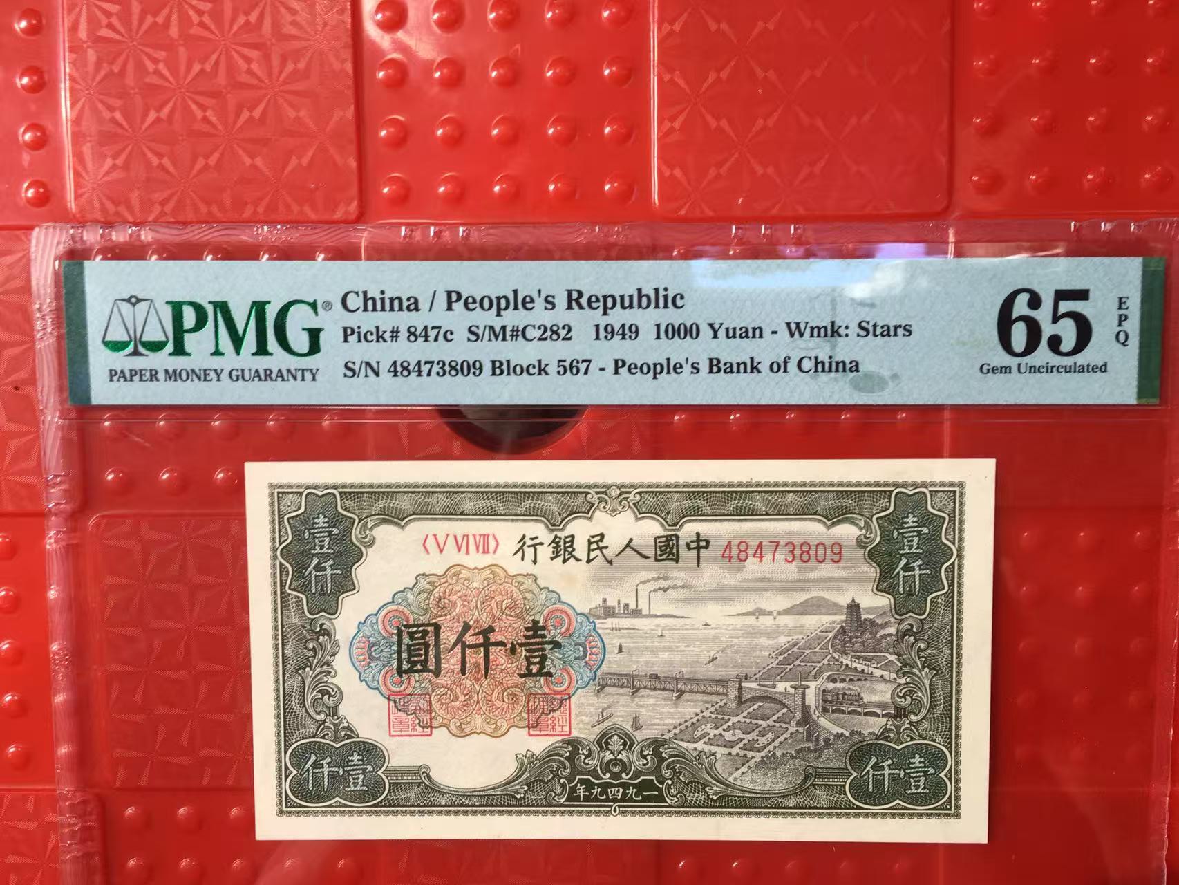 → PMG65E一版币壹仟圆钱塘江大桥,星水印,高分难得