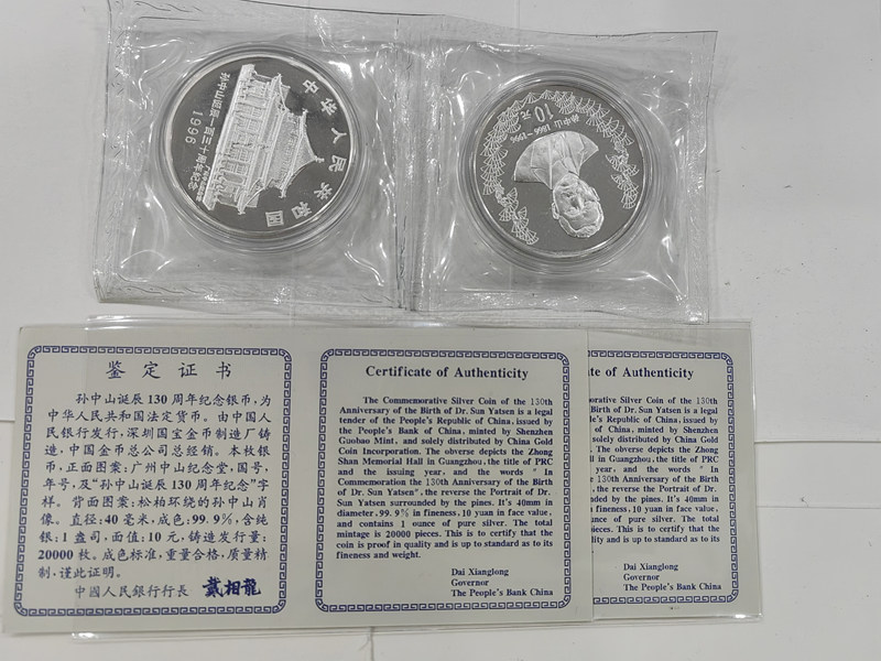 出孙中山130周年银币原封原证两连号