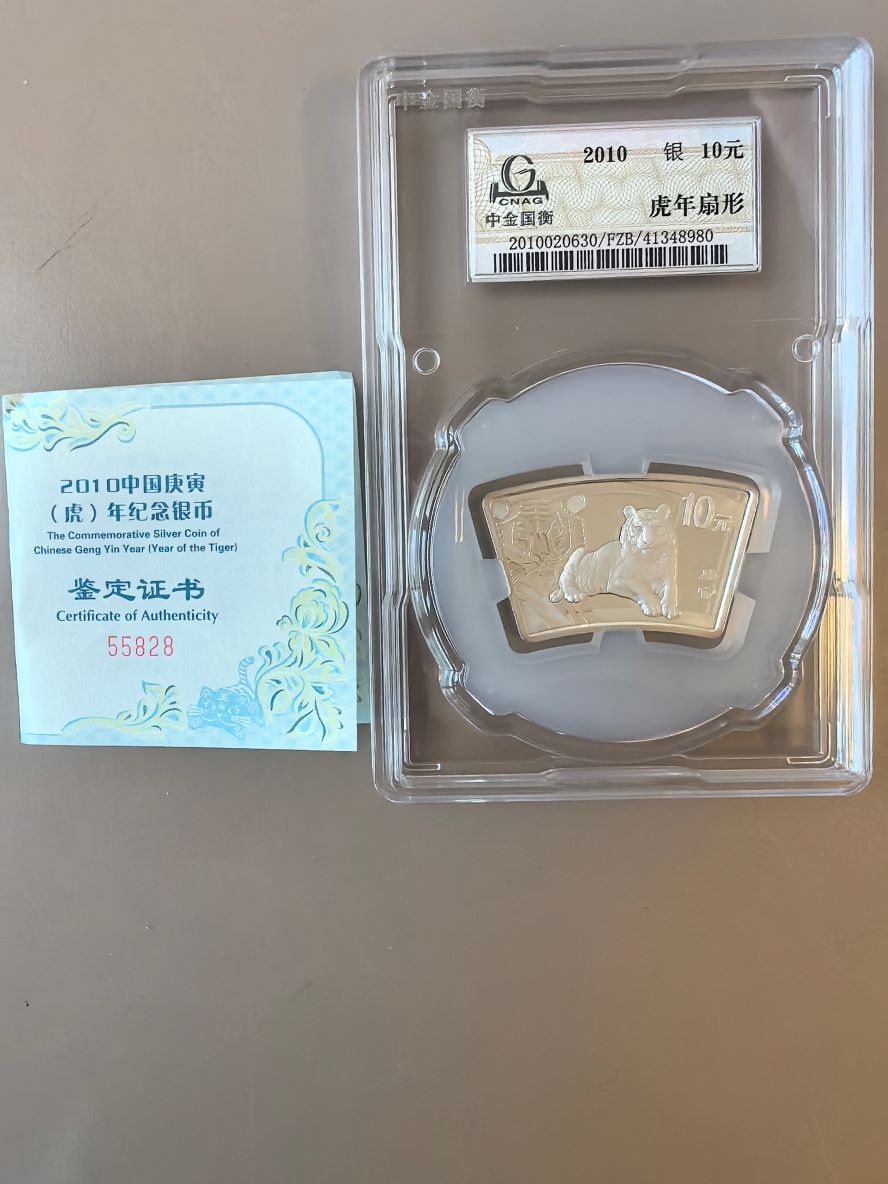 2010年扇银虎630国衡封装,包品包邮不符包退,礼盒15年扇银羊430一个证书均无4,不议价。另有生肖扇银空盒出。35一个