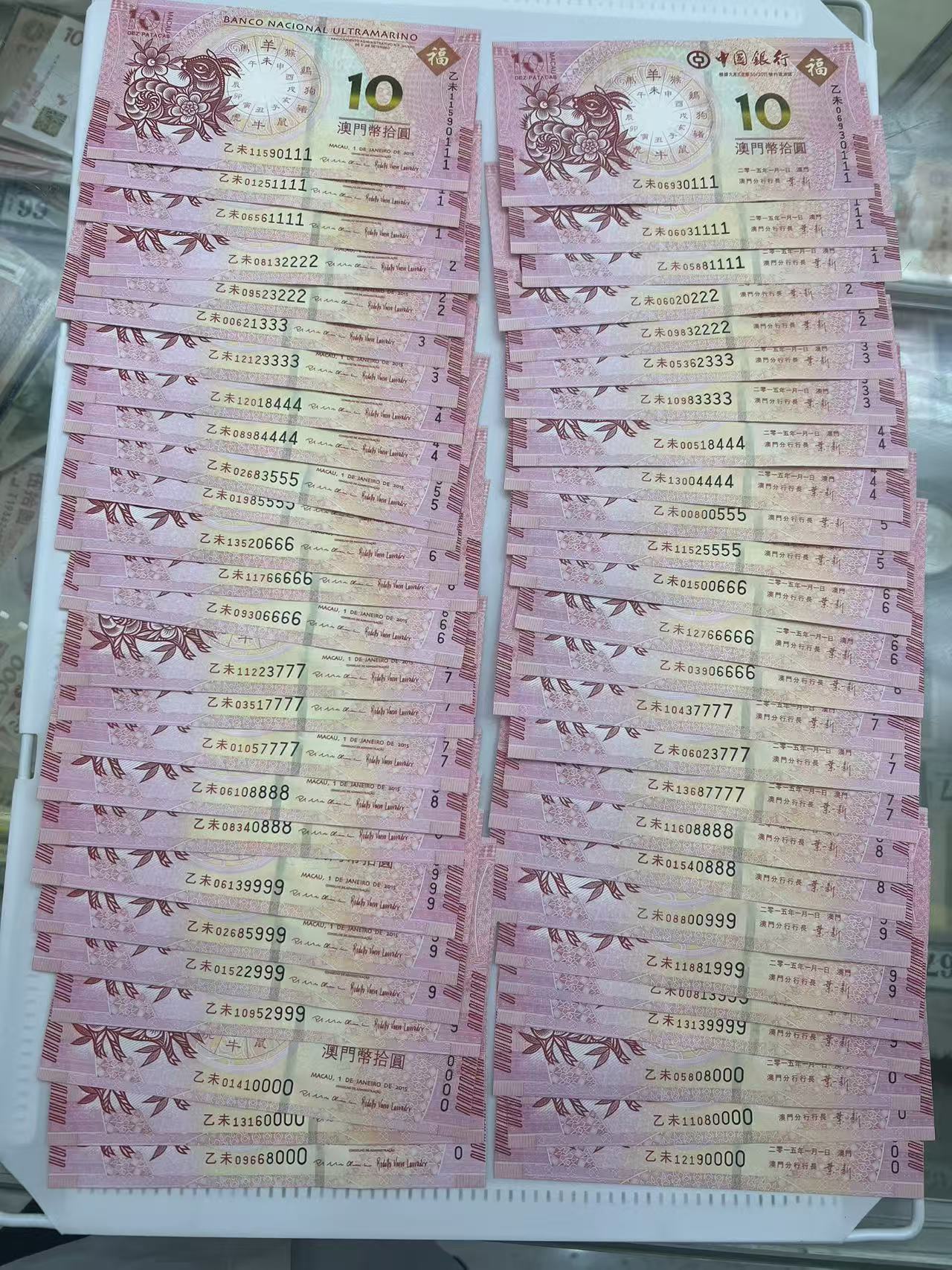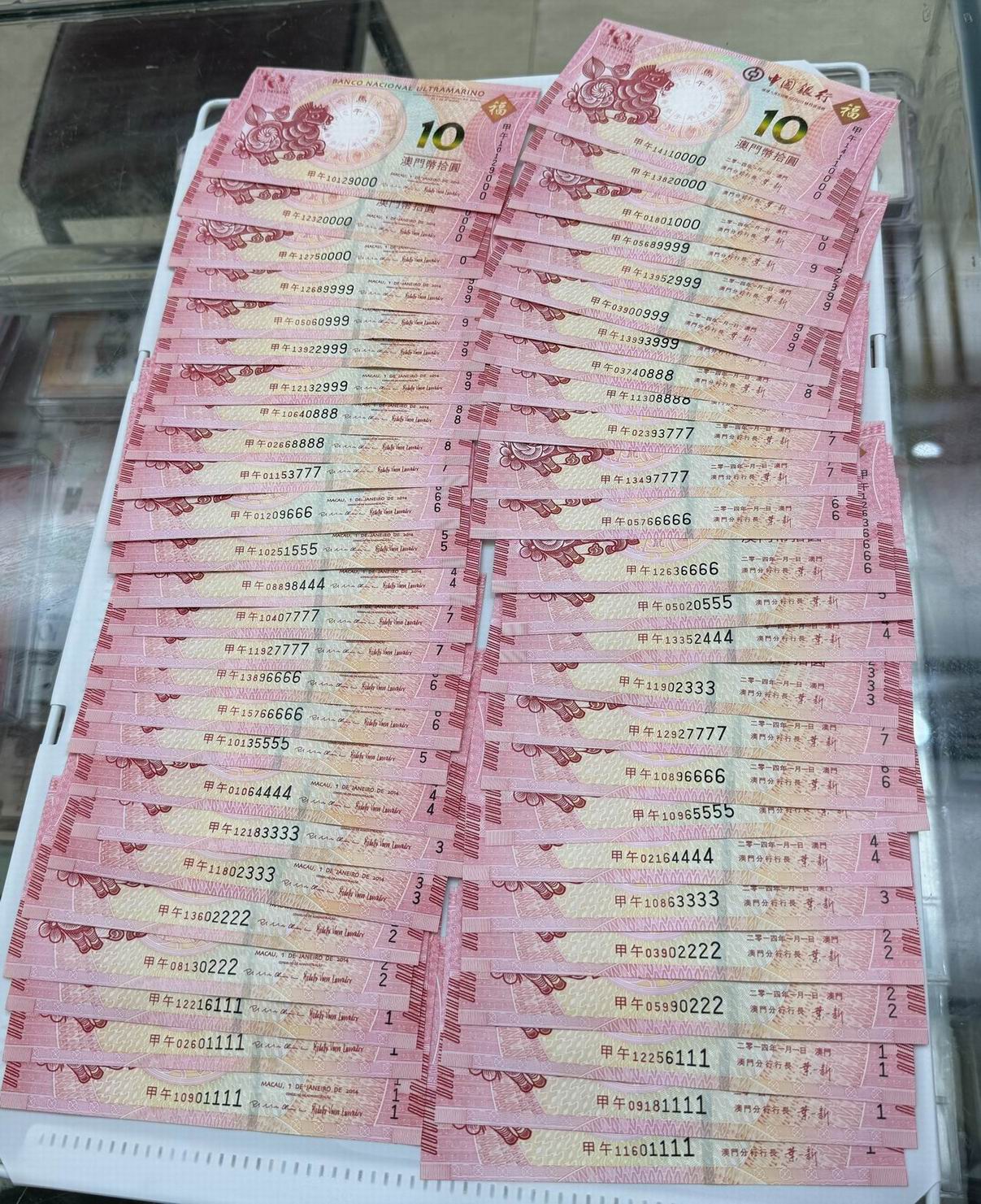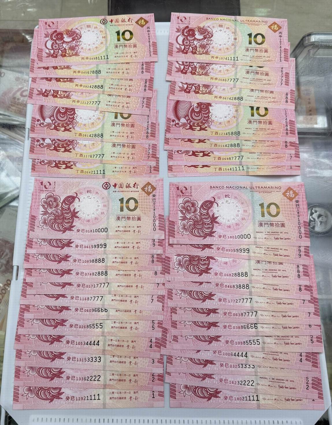 澳门豹子号生肖钞共171张,内含倒置号,每张售价30元(共5130元),品相如图,一起出,电联确认。