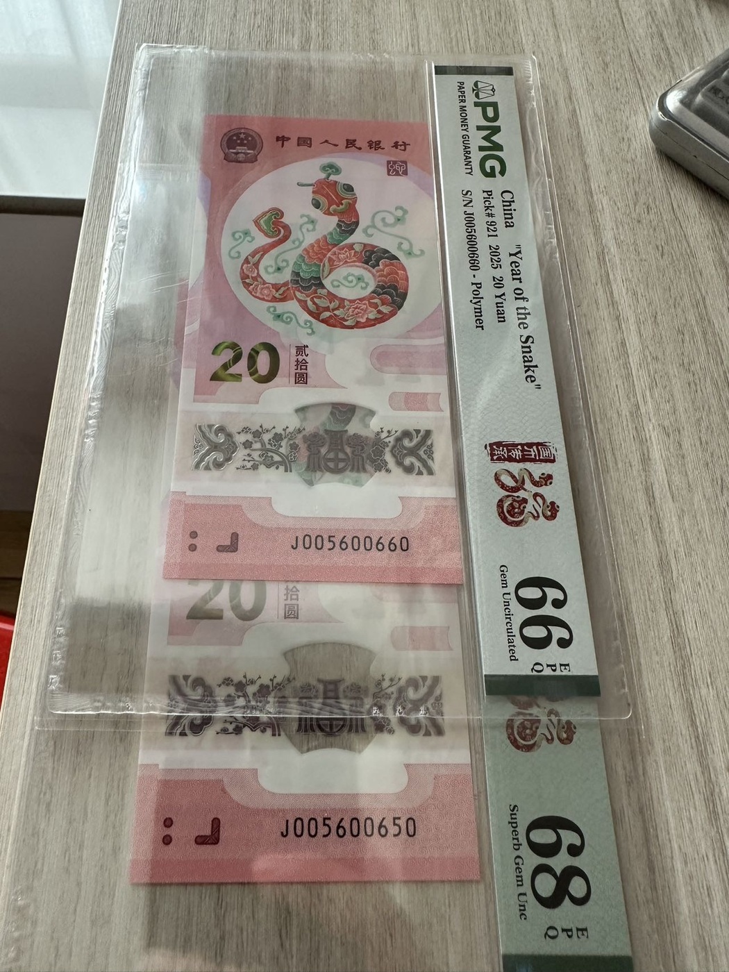→ 便宜出精品小龙钞PMG68分尾95,龙两张16000元送全同号蛇,蛇钞圆圆95,金马王尾95,