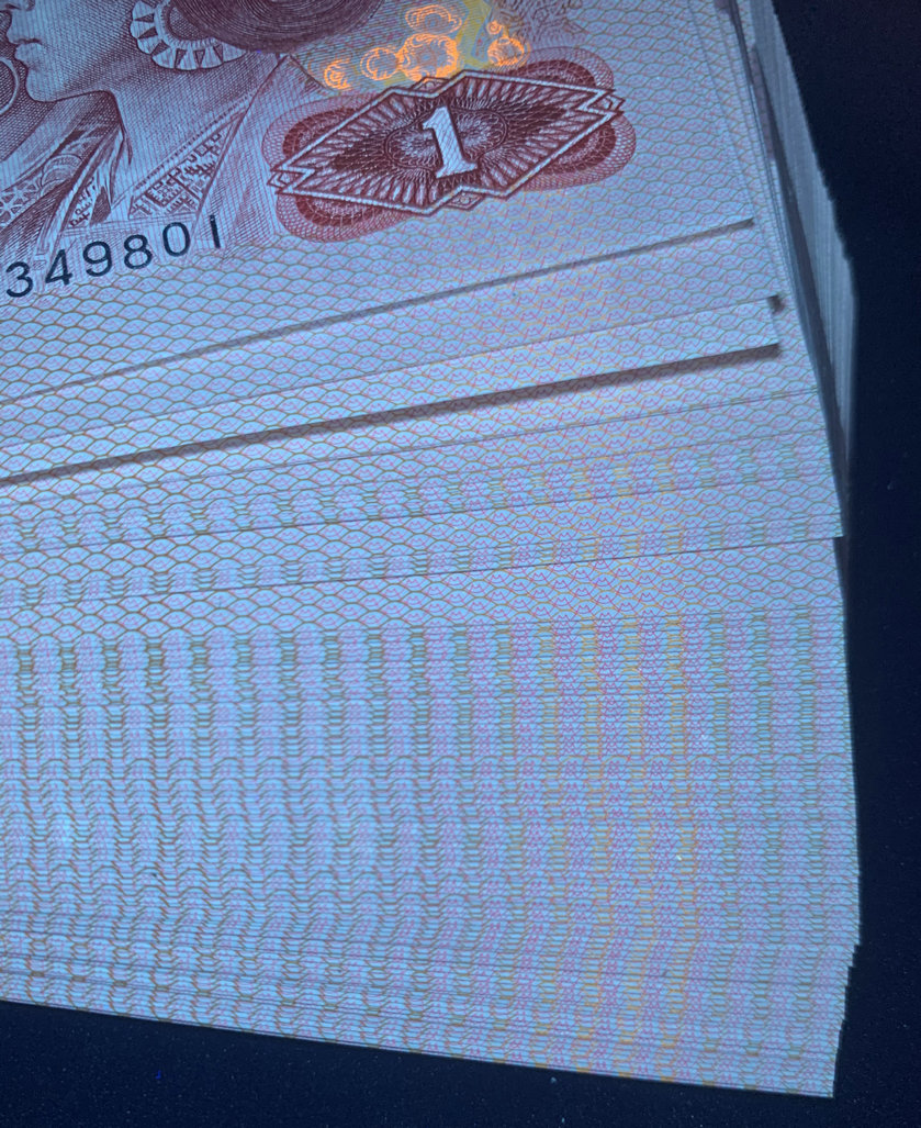 捆拆绝*品888百连无斑,一侧灯下有轻微原始胶印如图,漂亮的金边中国龙,价1050元包顺丰