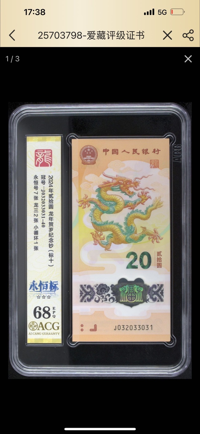 → 龙钞023龙三标十,爱藏评级68分,小循环