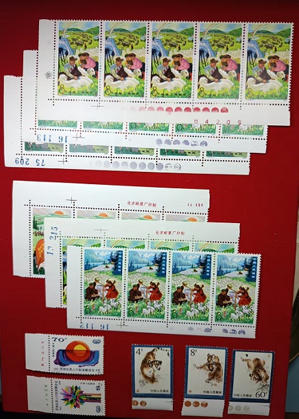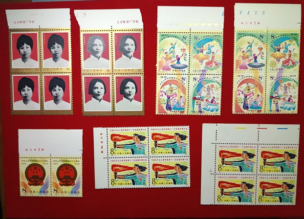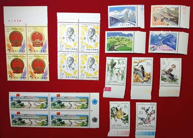 小国徽厂方,原胶全品90。妇女节厂方,原胶过灯全品,60。长城色标,原胶全品88。广交会小梅花4方,原胶全品,280。益鸟色标,原胶全品,48。