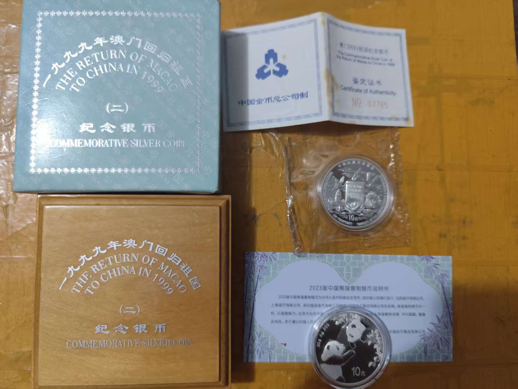 澳门回归二组银币,