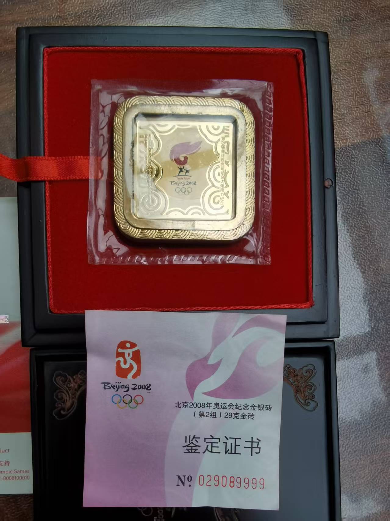出2008年北京奥运会纪念金砖1枚(火炬接力纪念),重29克
