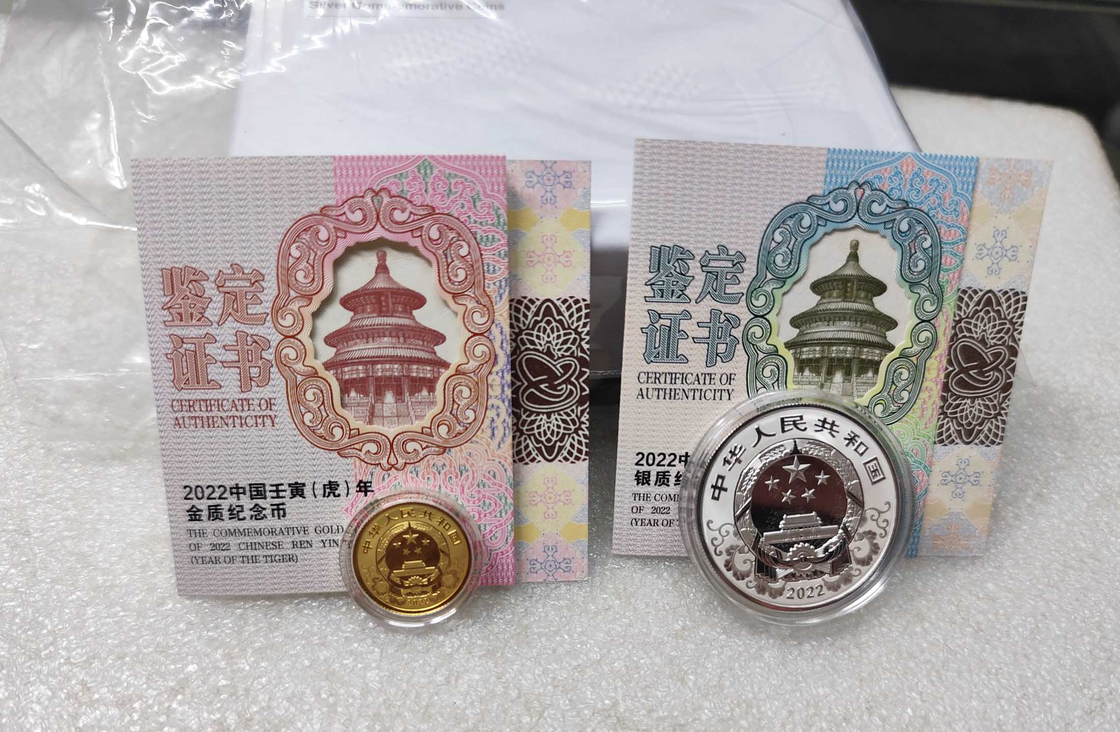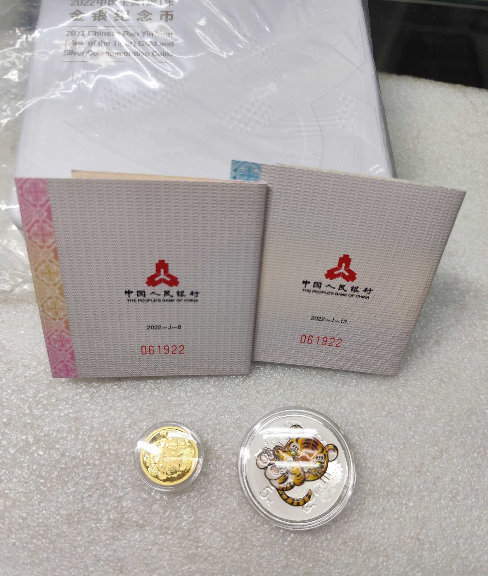 2022年金银虎币一套3克金币 15克银币,盒证齐全,证书全程无3457 双尾号码,计3200元包快!