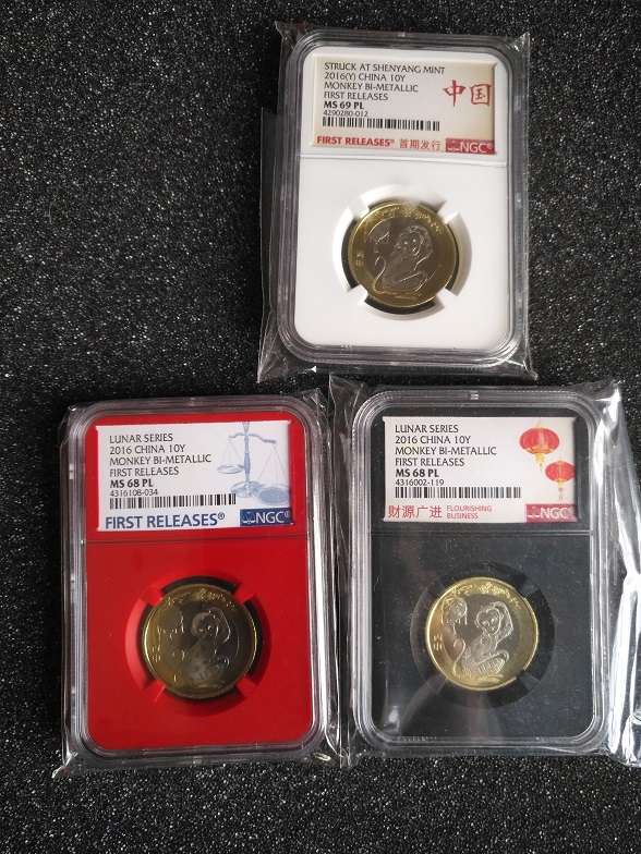 二猴(NGC-MS69PL;NGC-MS68PL)评级3枚,69分外盒有磨痕;齐售不分拆180元包普快!