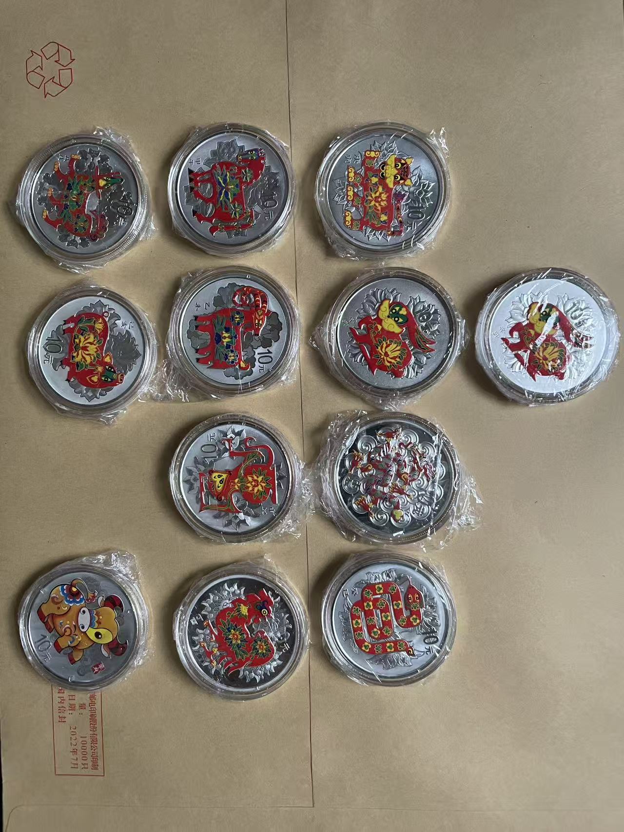 售:10年虎至21年牛二轮彩色生肖金银币24套