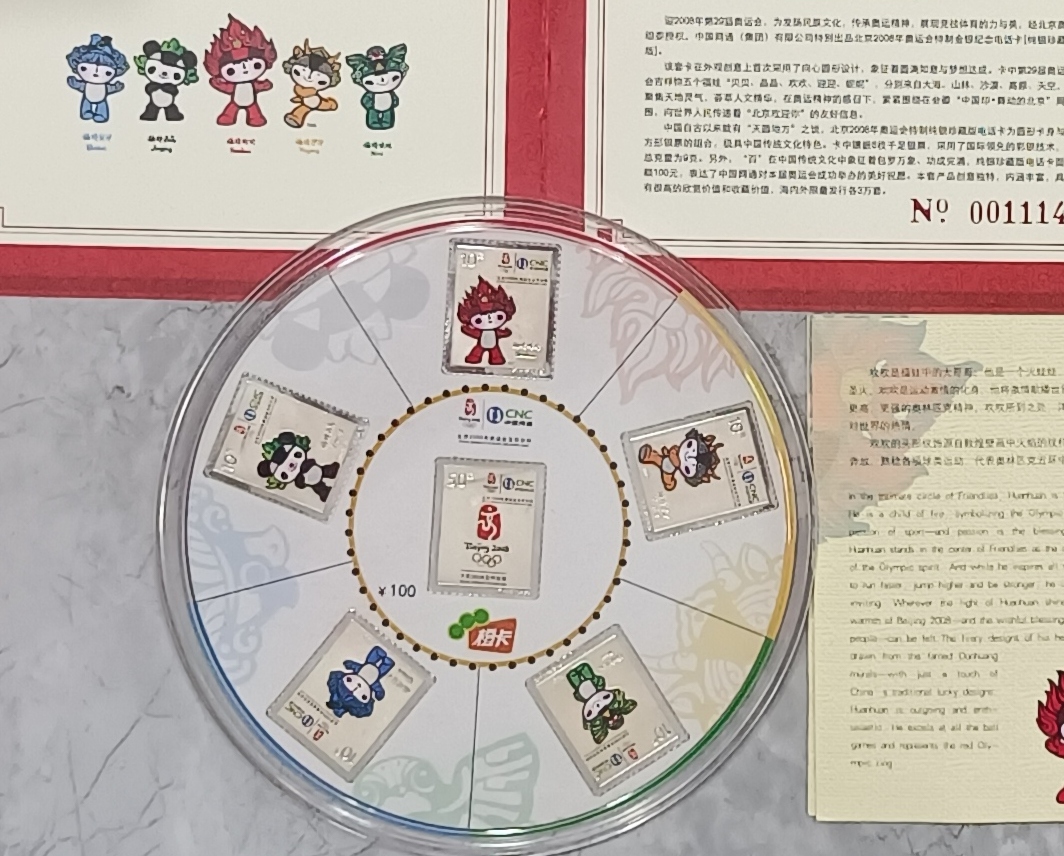 北京奥运会组委会与中国网通联合发行的纯银电话卡6枚 999银重9克