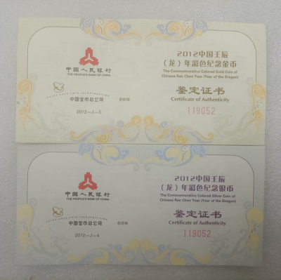 2012年龙年彩金银币 3克金30克银 3700