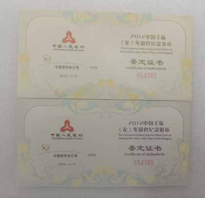 2012年龙年彩金银币 3克金30克银 3700