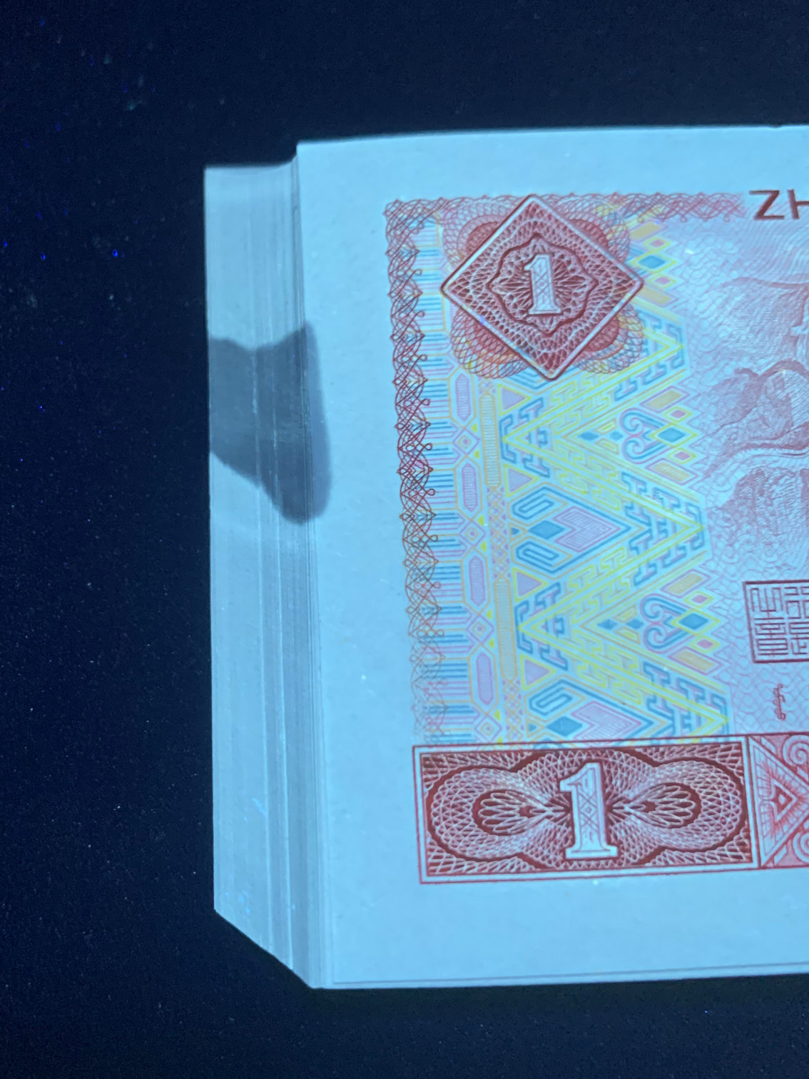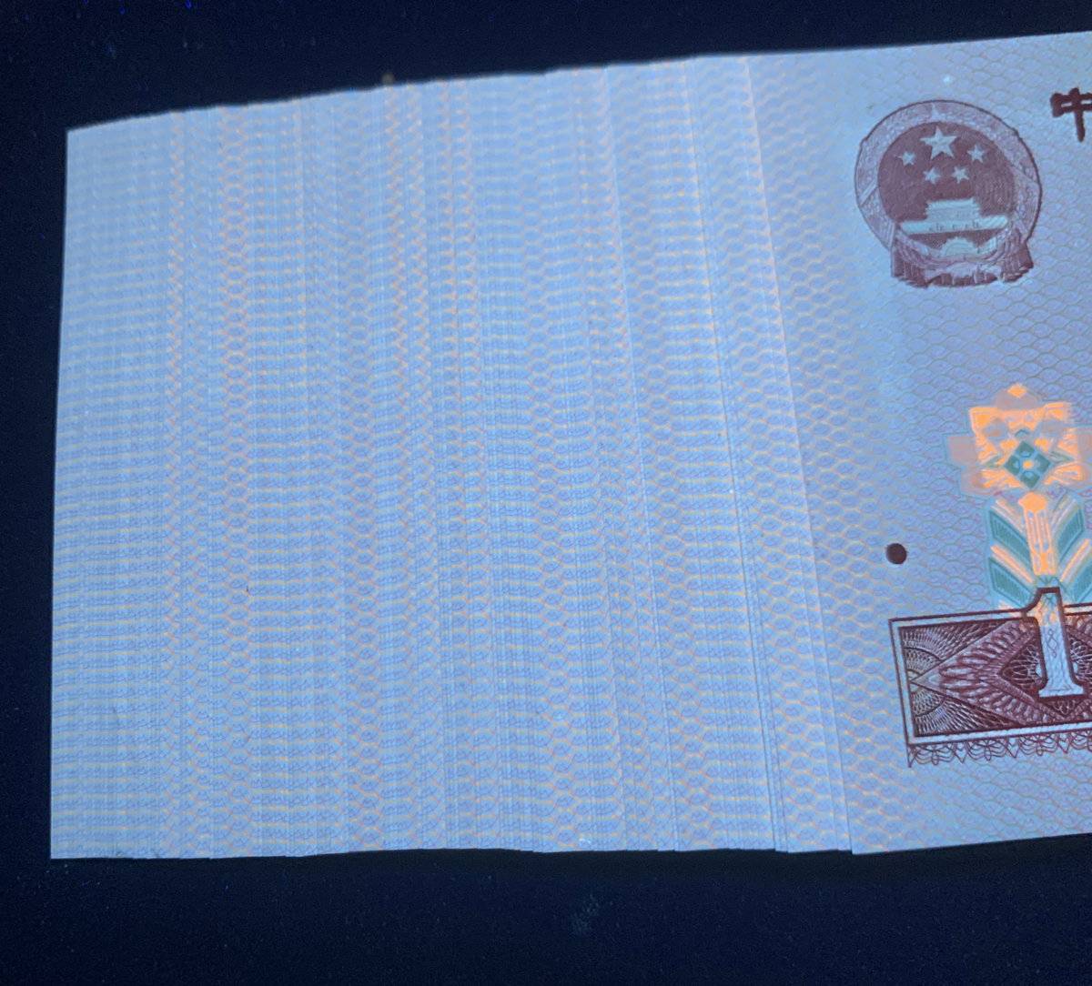捆拆绝*品888百连无斑,一侧灯下有轻微原始胶印如图,漂亮的金边中国龙,价1050元包顺丰