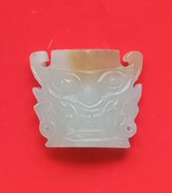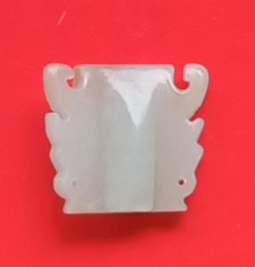 玉质细腻,做工很好,上宽3.6公分,下宽3.1公分,高3.1公分,厚1.1公分,重18.62克。售380元。品如图,喜欢的朋友请电话联系。
