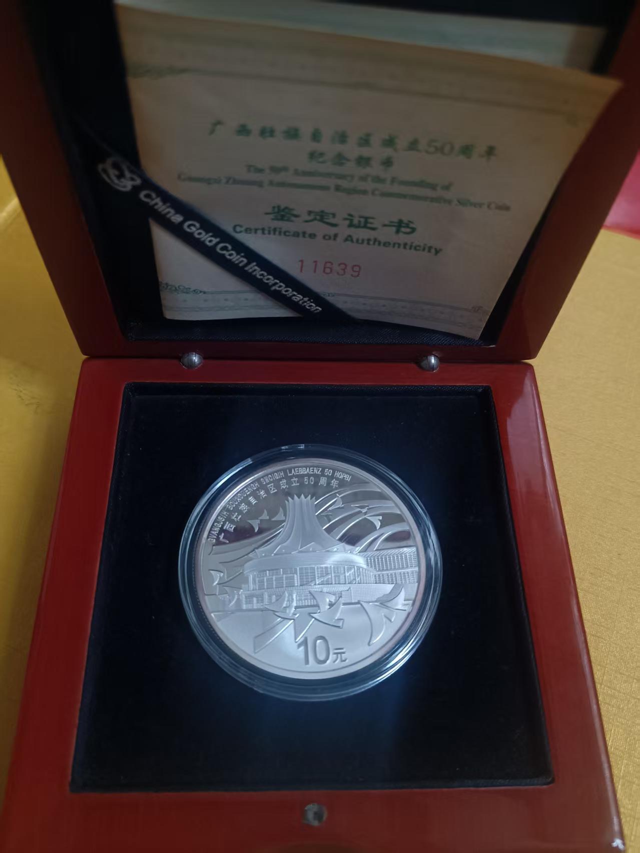 广西壮族自治区50周年纪念银币