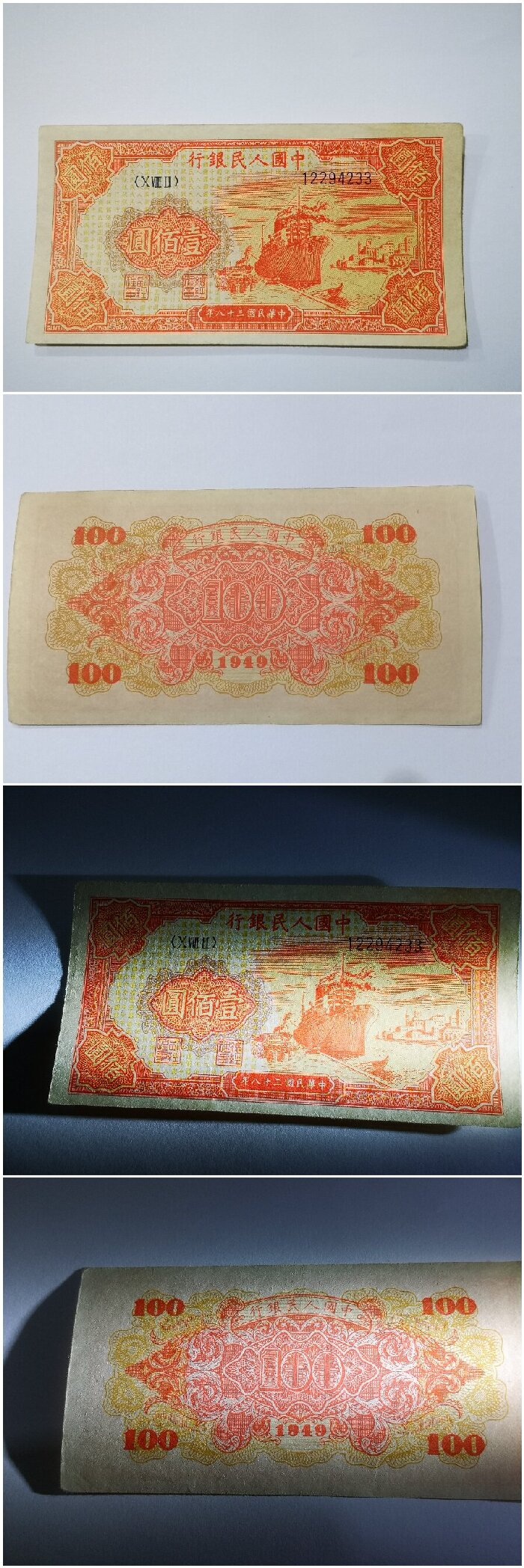 出售一版100元红轮船一枚 原票 保真 4800元包邮