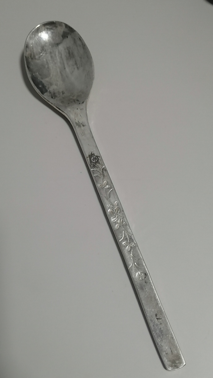 手工纯银勺,以前用熊猫银币打的,61克,720元,谢谢。