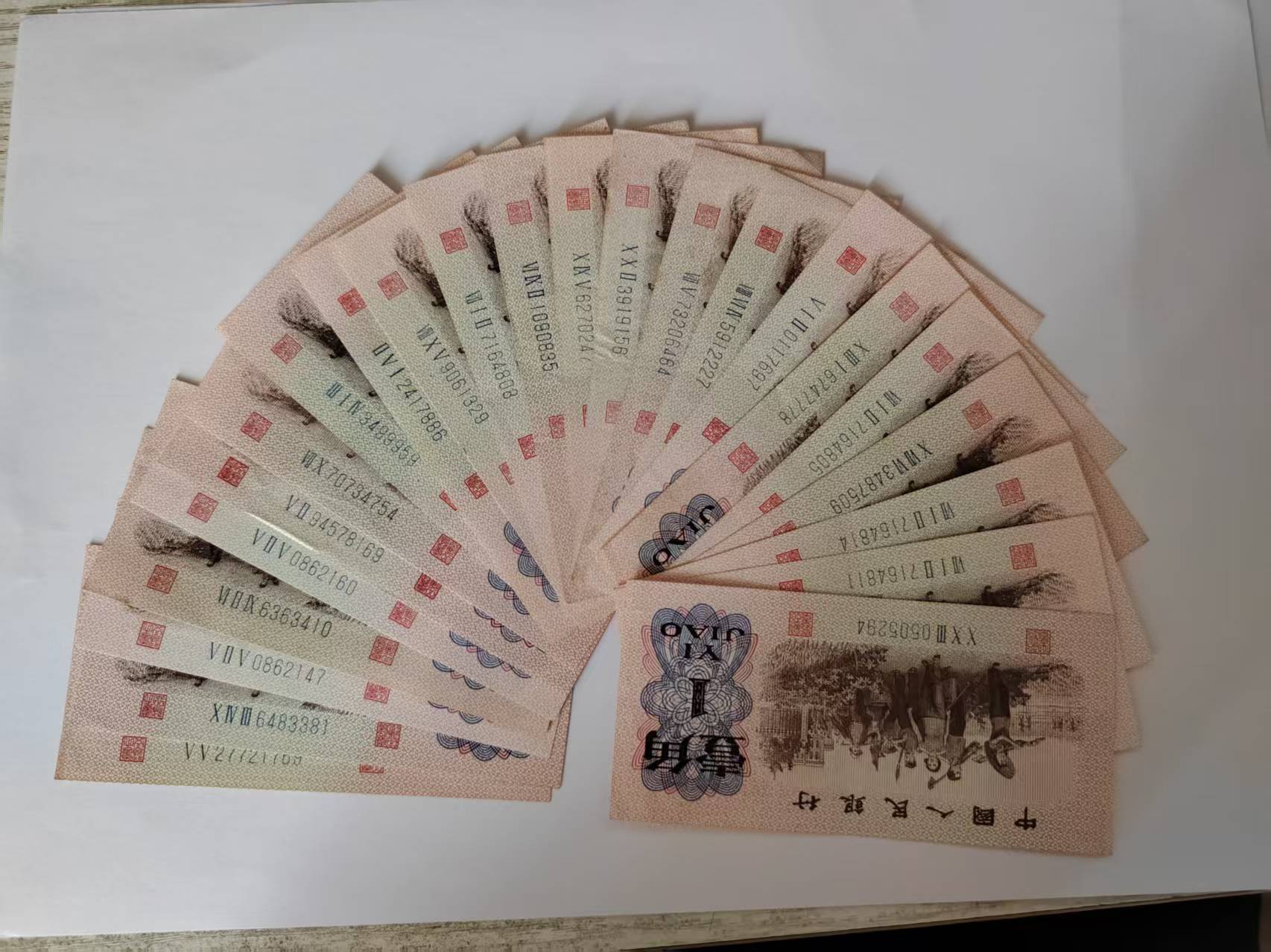 售原票大团结7张,纺织18张,大桥标十3组,大桥散连96张,生产一角散连55张。通走3800元包邮顺丰。
