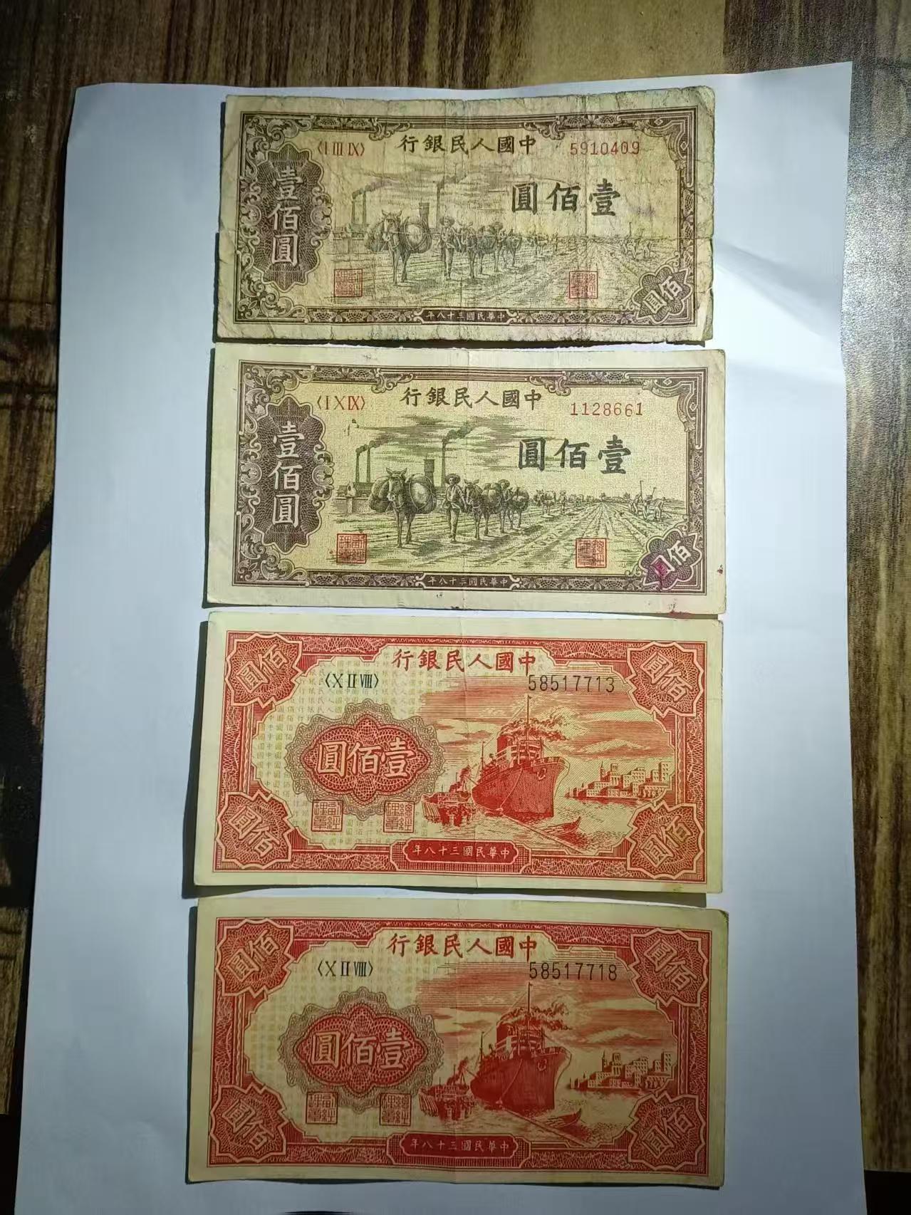 5800顺丰包邮微信看细图,驮运好品相那张有红色污渍,红轮船两张都有折痕