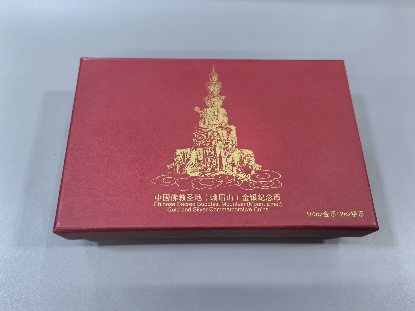 出峨眉山金银币,1/4盎司的金,2盎司的银,证书无47,品相如图,盒证齐全,售